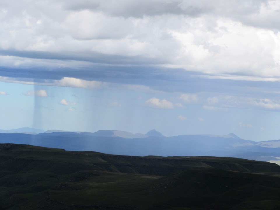 We dropped down to the Knuckles Traverse trail and found water in the gully below the south pass. We found a cave just below the fence on the Lesotho border – unlike the previous cave, this one had a good floor and could be used for an overnight spot. We sat out another bout of rain here.