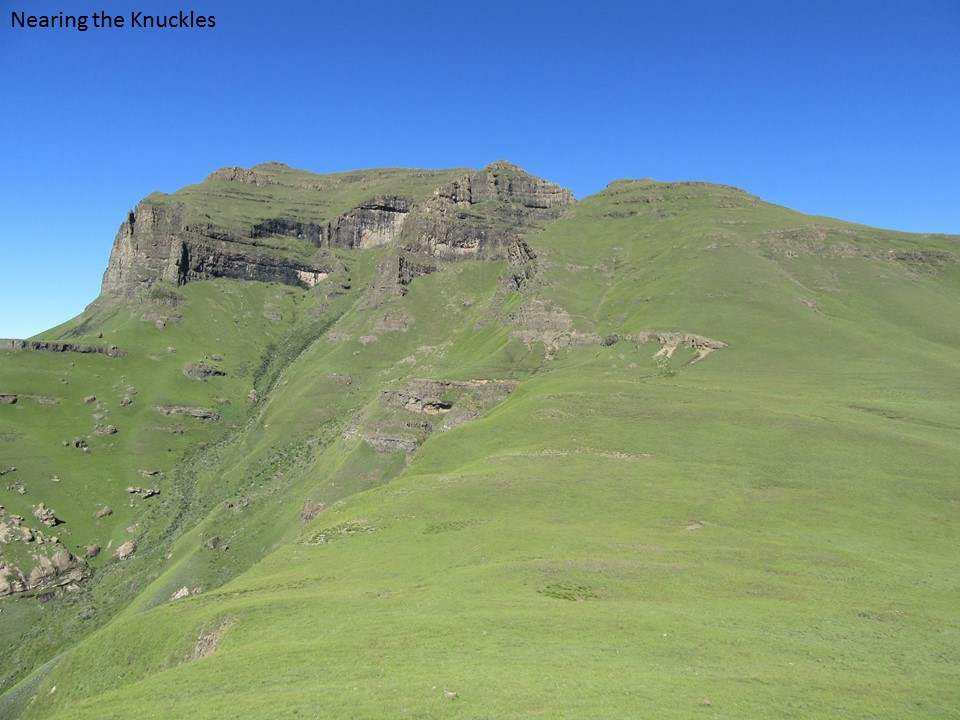 After yet another break on the pass itself, we found ourselves on top of the North Knuckle (taking a break up there, of course) at 11AM. Not bad – 5h30 car park to summit. North Knuckle Pass is short and easy, entirely on grass. The peak is easiest to ascend on the south slope.