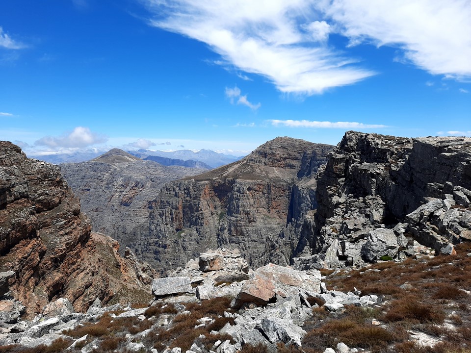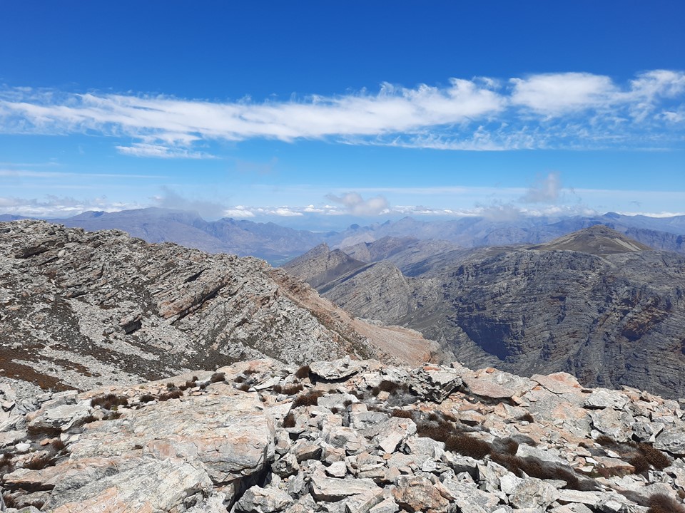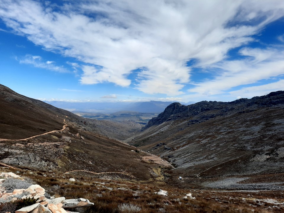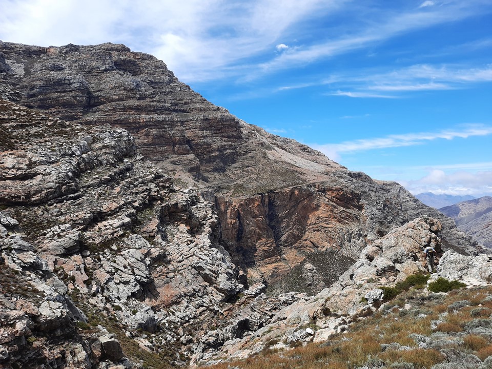 The scenery suddenly goes from homogeneous to absolutely spectacular. The saddle above Groothoek Kloof is one of the most spectacular spots I have ever encountered. My exact words to Tony were “this is what I came here for, not that [pointing down where we had just come from]”.