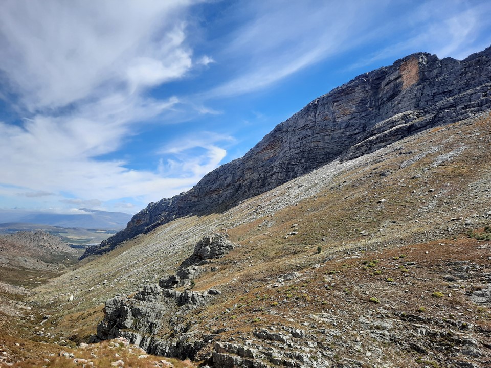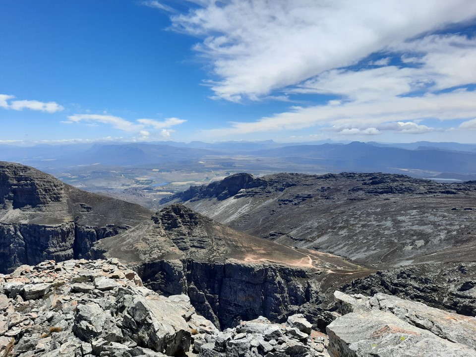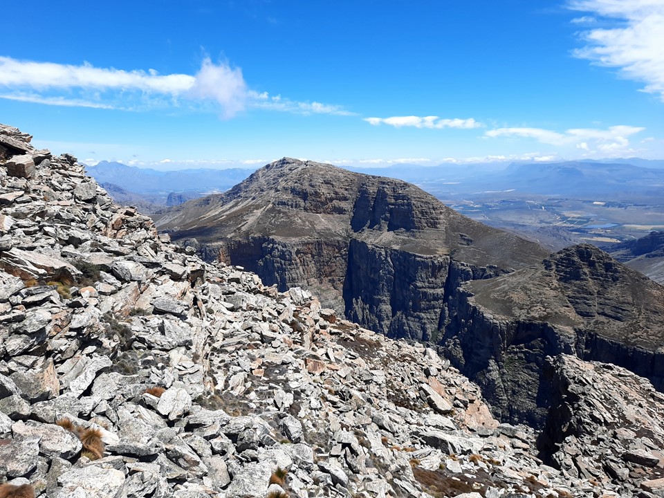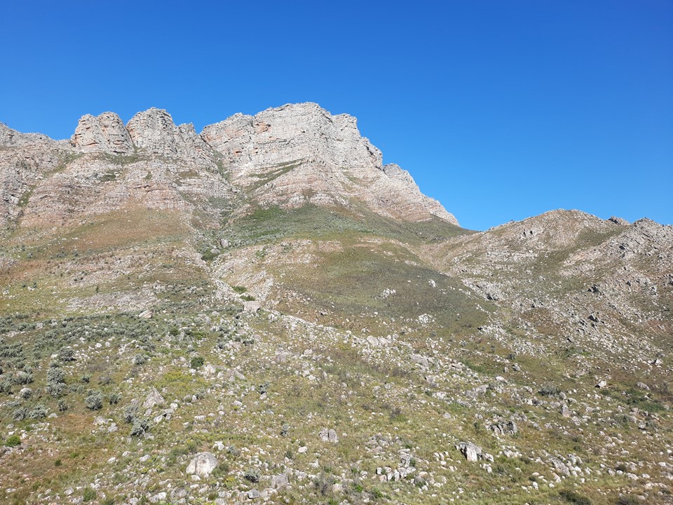 Despite being at the eastern end of the Hex Mountains, there are still some mountains visible in the immediate distance looking out that way. The peak rises above the town of De Doorns, with Ben Heatlie Peak rising above the other side of the valley. The top section is well worth the effort!