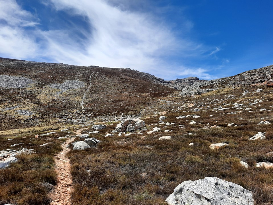 Matroosberg can be driven up (well, most of the way) – but luckily the jeep track is in a different valley to the hiking trail, so we didn’t have any of those annoying vehicle noises on the way up. But as you reach the saddle – the top of Groothoek Kloof, the two routes merge.