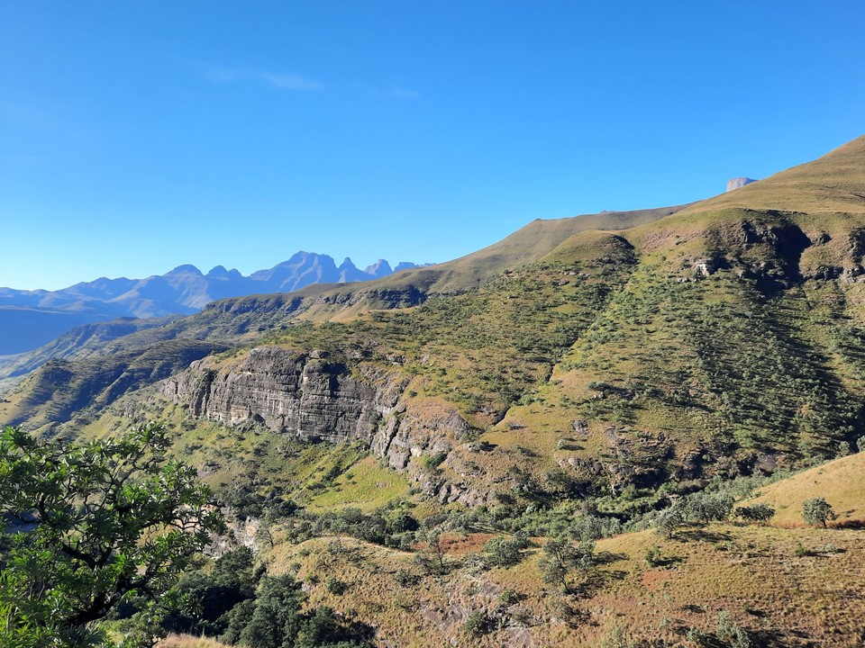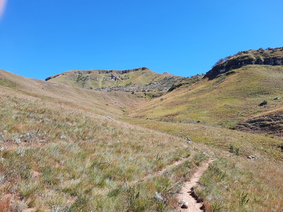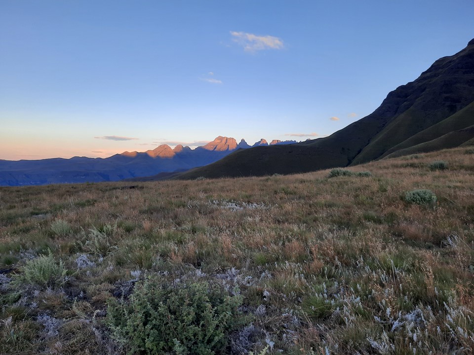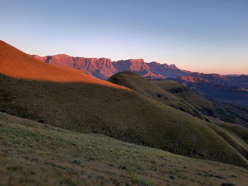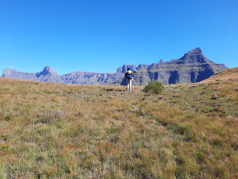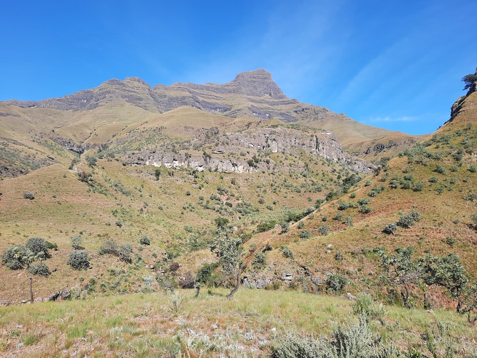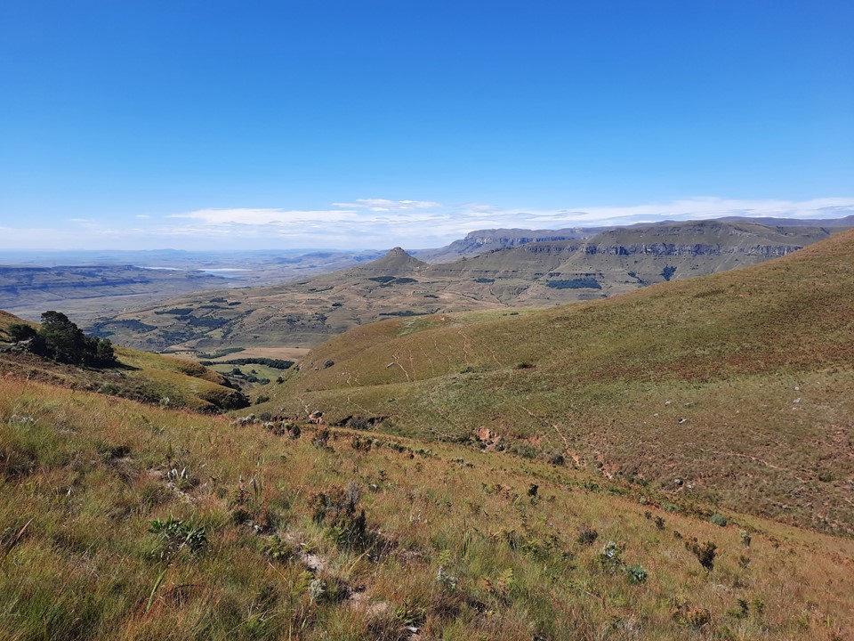 We probably spent about 15% of the time off trail, and the rest was just following the trails the locals use in the area. Dropping off the ridge meant we lost our views north, but we could still see from Cathedral Peak to Mponjwane, and naturally the Outer Needle – so not exactly a bad view! We hit the road just after the bridge below Dlamini’s Kraal, and did the last 5km on the road. This was the first time we were on ground I had done before for the entire hike – 33km, 28km of which was new ground to me – not something I often get in the Drakensberg any more.