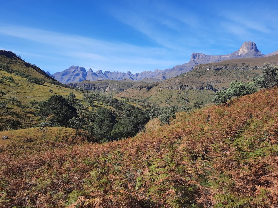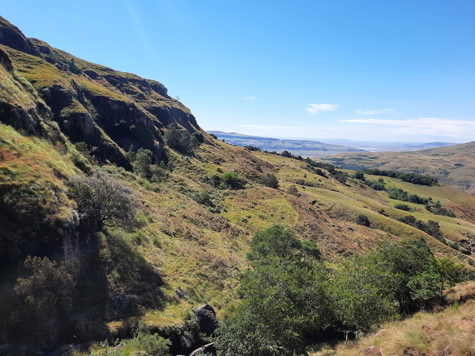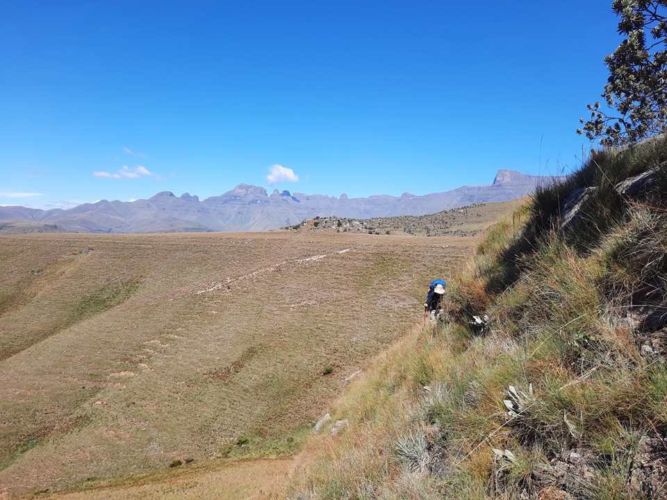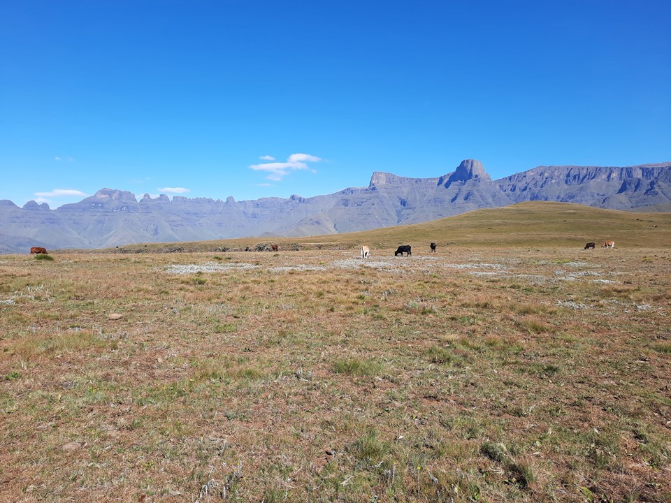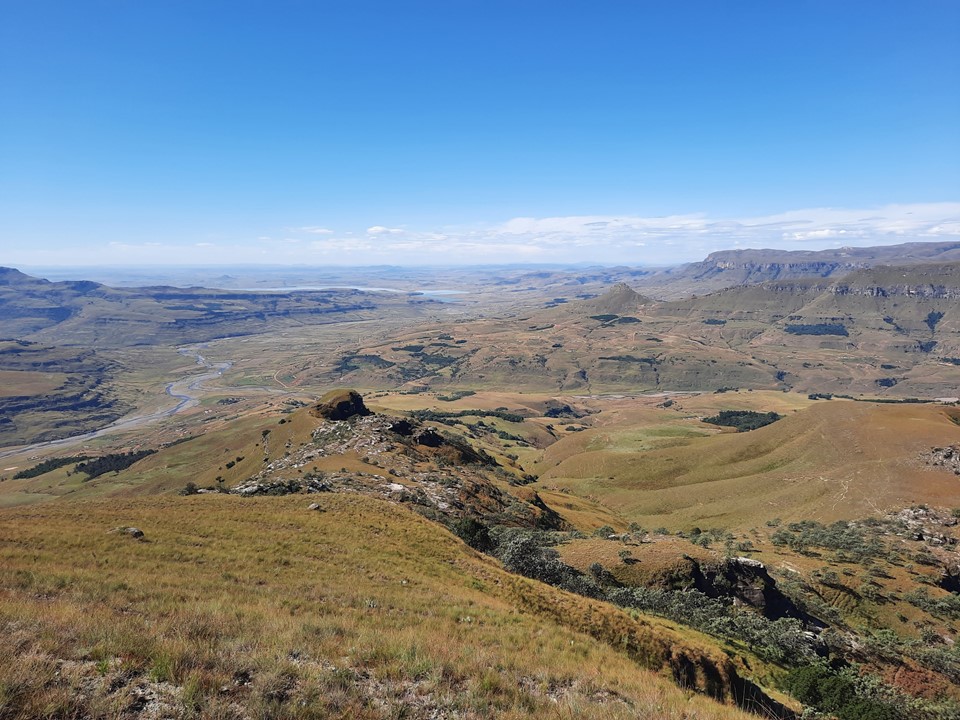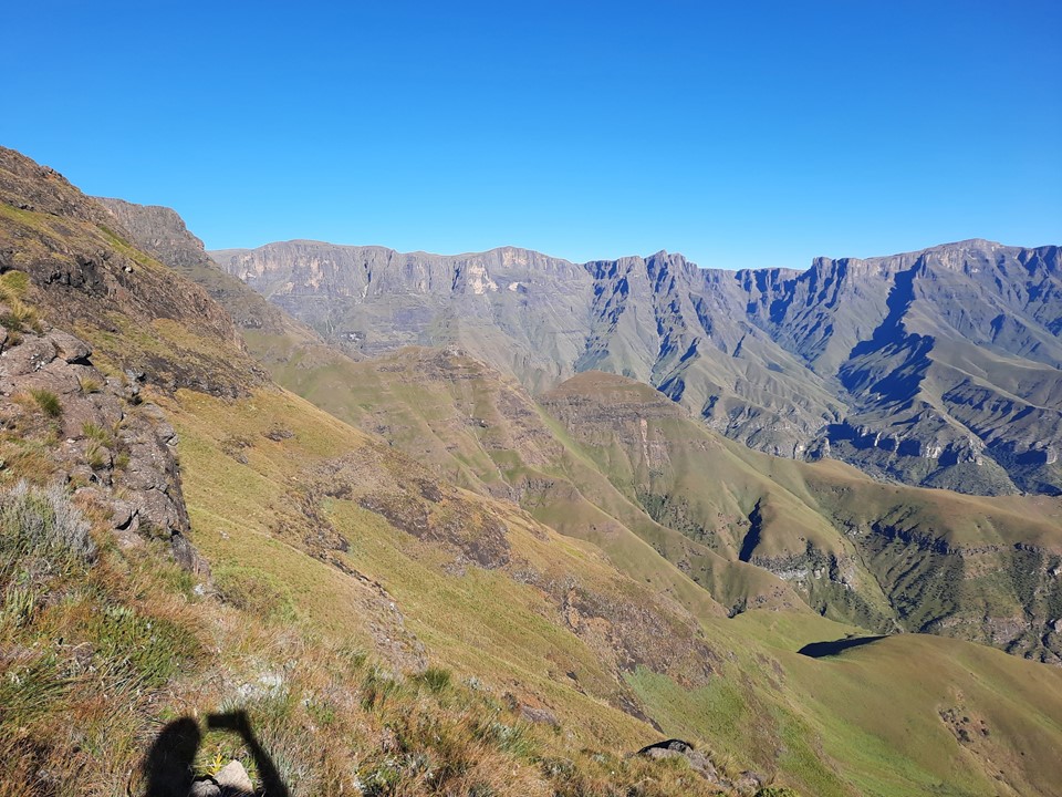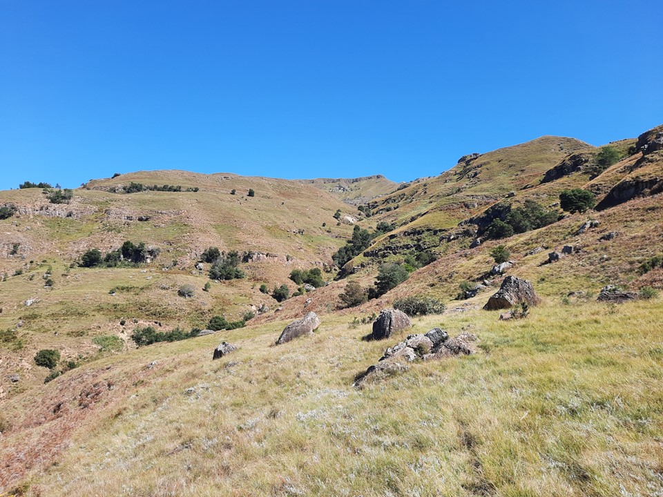We probably spent about 15% of the time off trail, and the rest was just following the trails the locals use in the area. Dropping off the ridge meant we lost our views north, but we could still see from Cathedral Peak to Mponjwane, and naturally the Outer Needle – so not exactly a bad view! We hit the road just after the bridge below Dlamini’s Kraal, and did the last 5km on the road. This was the first time we were on ground I had done before for the entire hike – 33km, 28km of which was new ground to me – not something I often get in the Drakensberg any more.