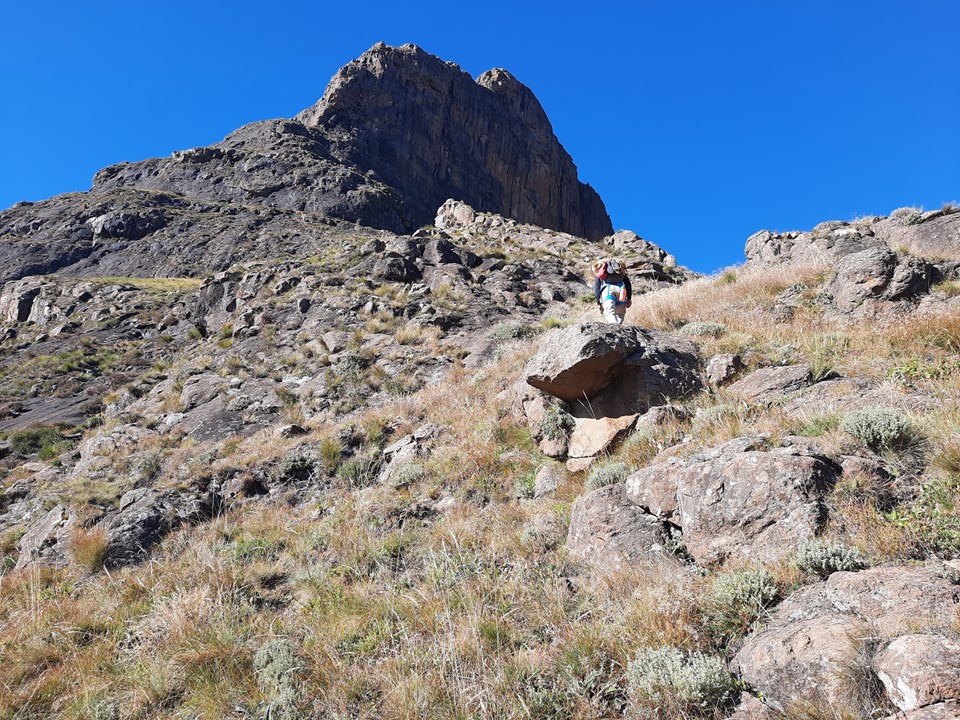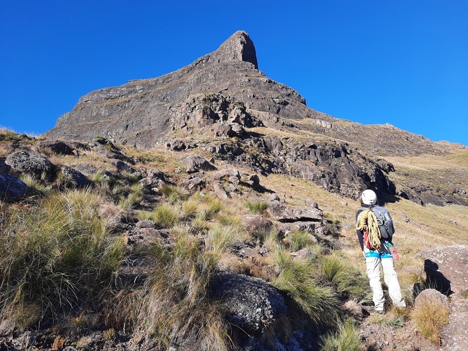 The Mnweni Needles are one of the more striking features of the Drakensberg. For some reason, they are often overlooked, and are rarely climbed. In 2017 I attempted to climb them, but a combination of heavy climbing packs and underestimating how slow the approach would be resulted in a 3 day hike to the saddle between them, and a hike back out. We didn’t even attempt pitch 1 on the Inner Needle, despite reaching the start of it.