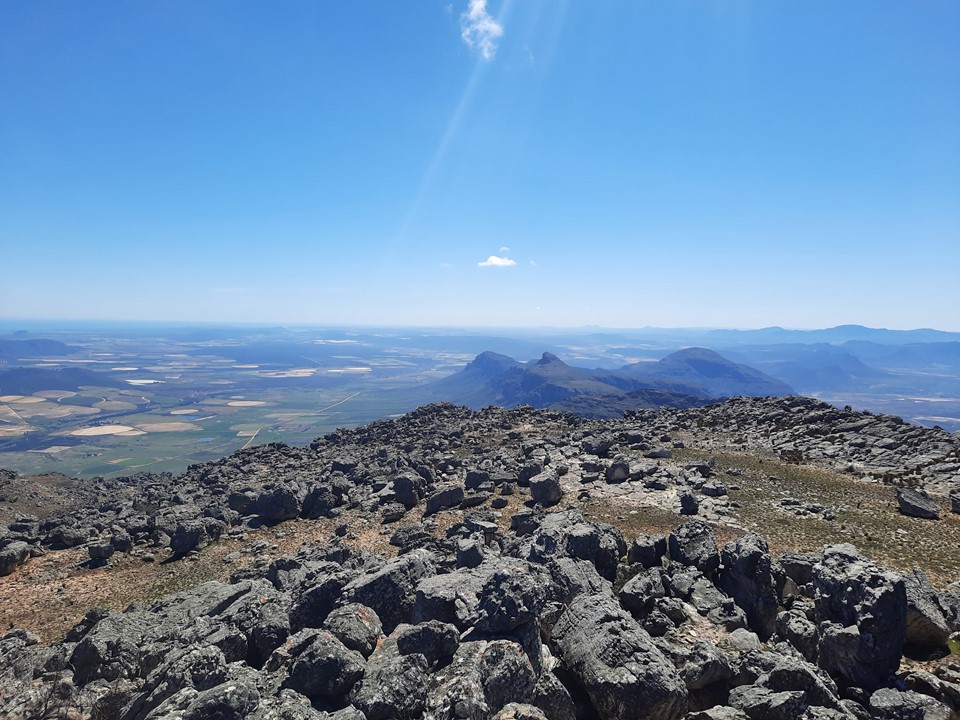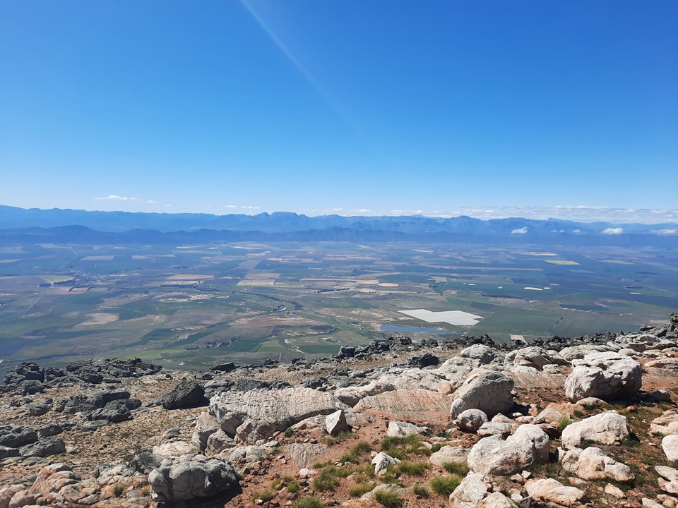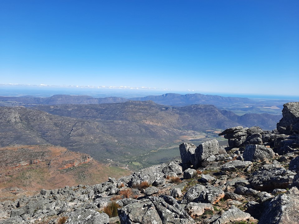 It was an amazingly clear day – various summits in the Cederberg were clearly visible, the Atlantic was visible to the west and even Table Mountain was visible 136km to the south! I didn’t bother trying to get a photo of the Cape Town Table Mountain as it was far too small to capture – but we could see the Bokkeveld-Tafelberg and Cederberg-Tafelberg very clearly as well.