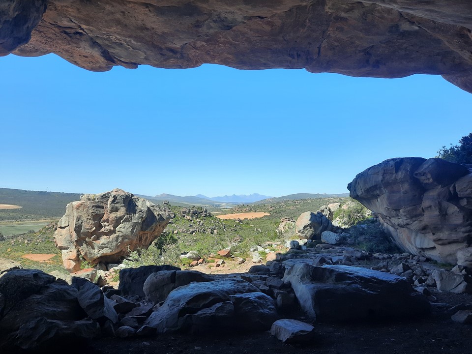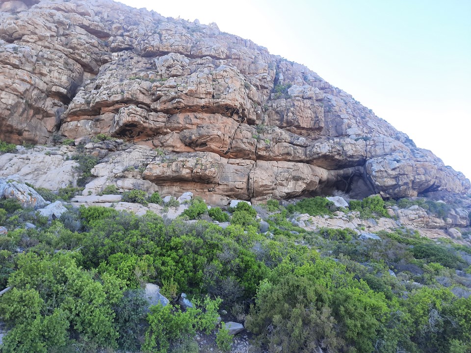 Diepkloof Rock Shelter isn’t well advertised, and I was a bit lucky to run into the farmer on the way in, otherwise I would have been turned away. It is a large cave on top of a small hill on a farm outside Elands Bay. The location is marked on Google Maps, but contact the farm and arrange access in advance – don’t just arrive. The entrance fee is R50 per person, and there is no trail to the cave – but it isn’t too hard, and isn’t overgrown.