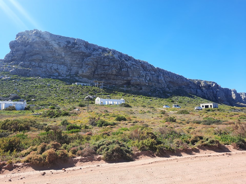 Arriving in Elands Bay, the scenery had changed a lot from the the Piketberg area. The hills became very smaller and the vegetation looked more desert-like. The last 1km of the road to Elands Bay Cave was a fairly rough dirt road – doable in my little Yaris, but it had to be driven slowly.