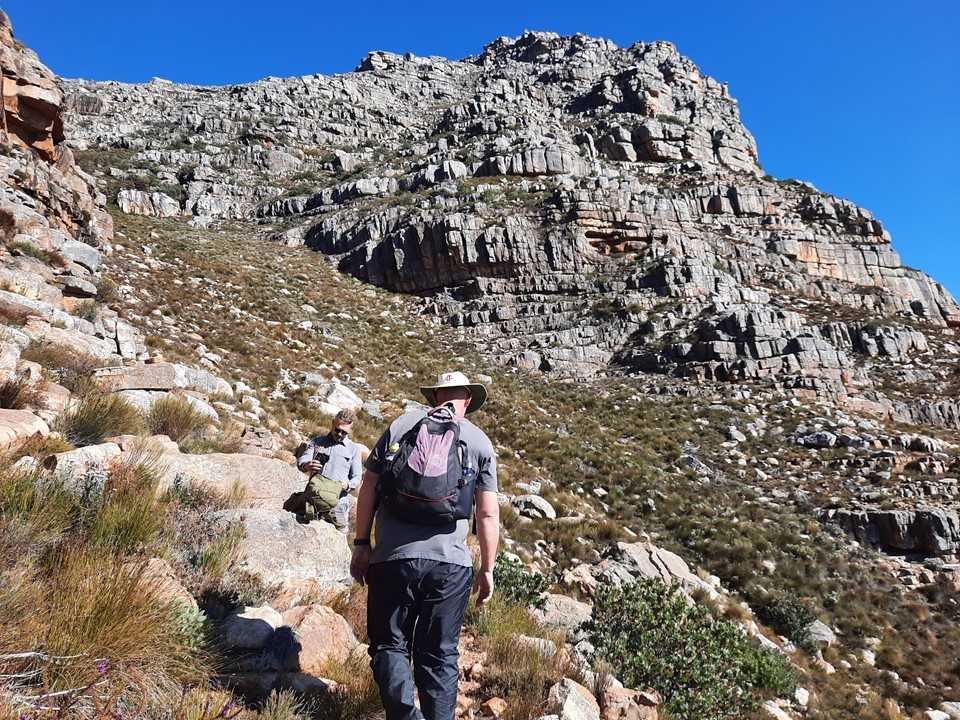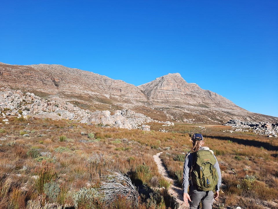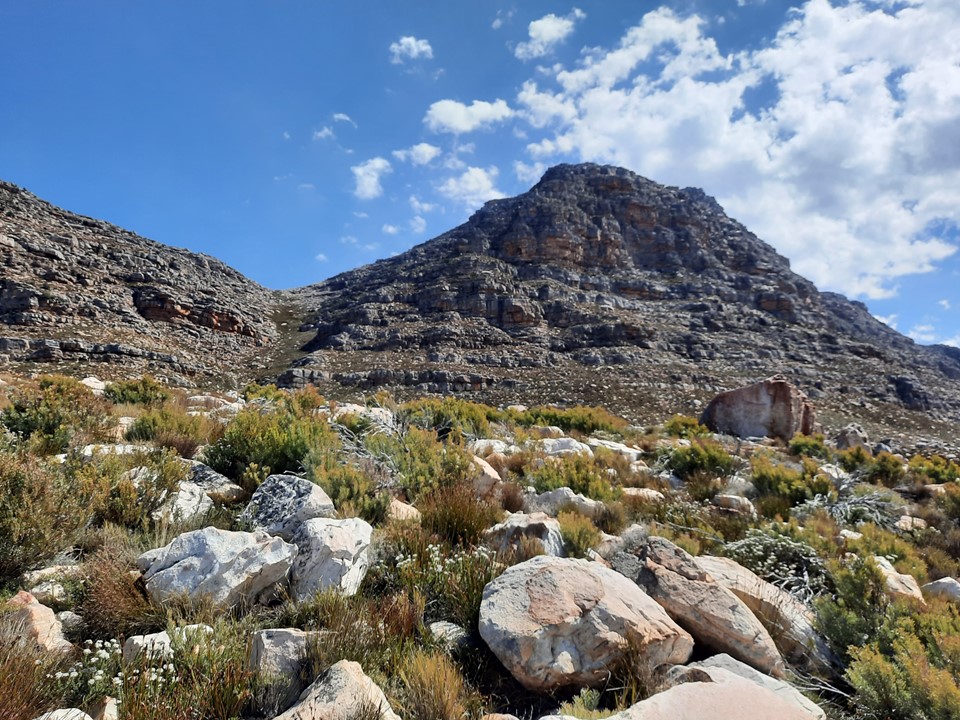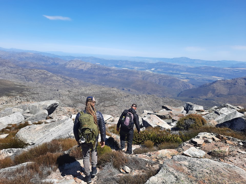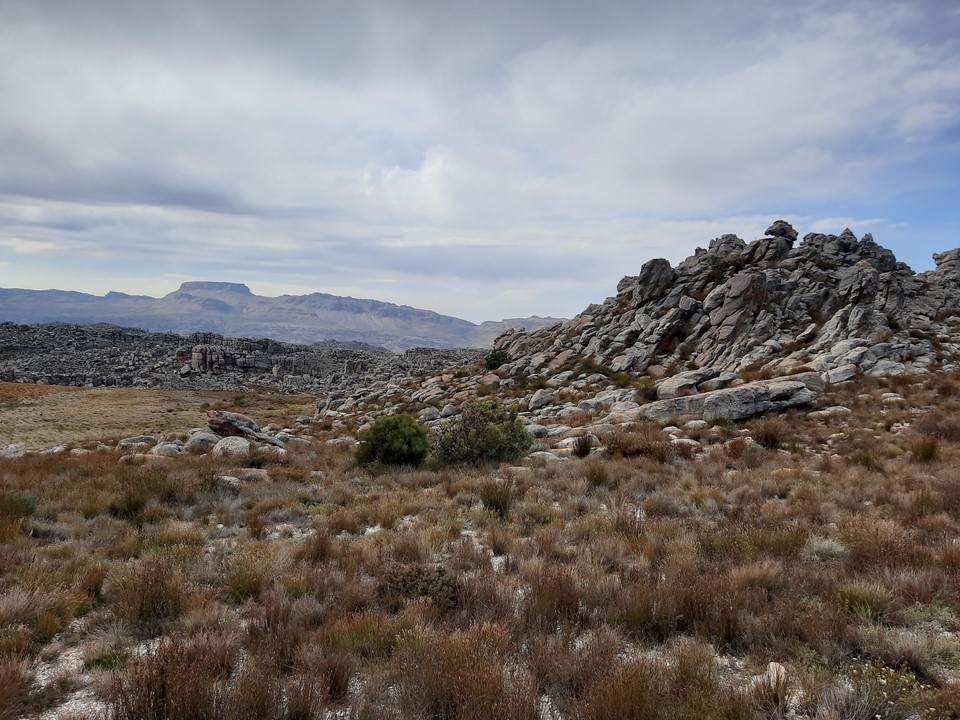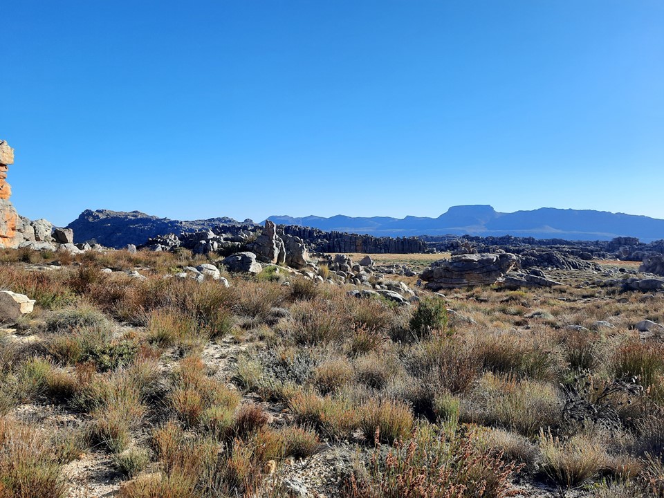 We stopped for a break behind some rocks – importantly out of the wind – and enjoyed the view out over the Cape Mountains. We could see forever!