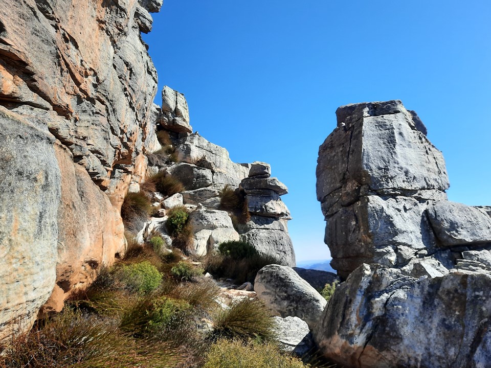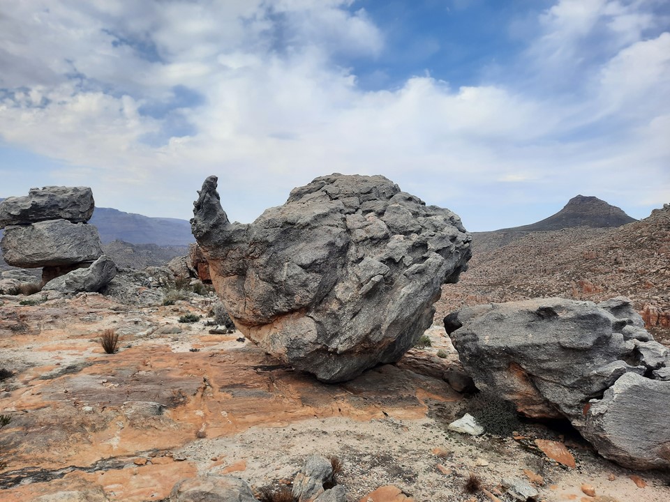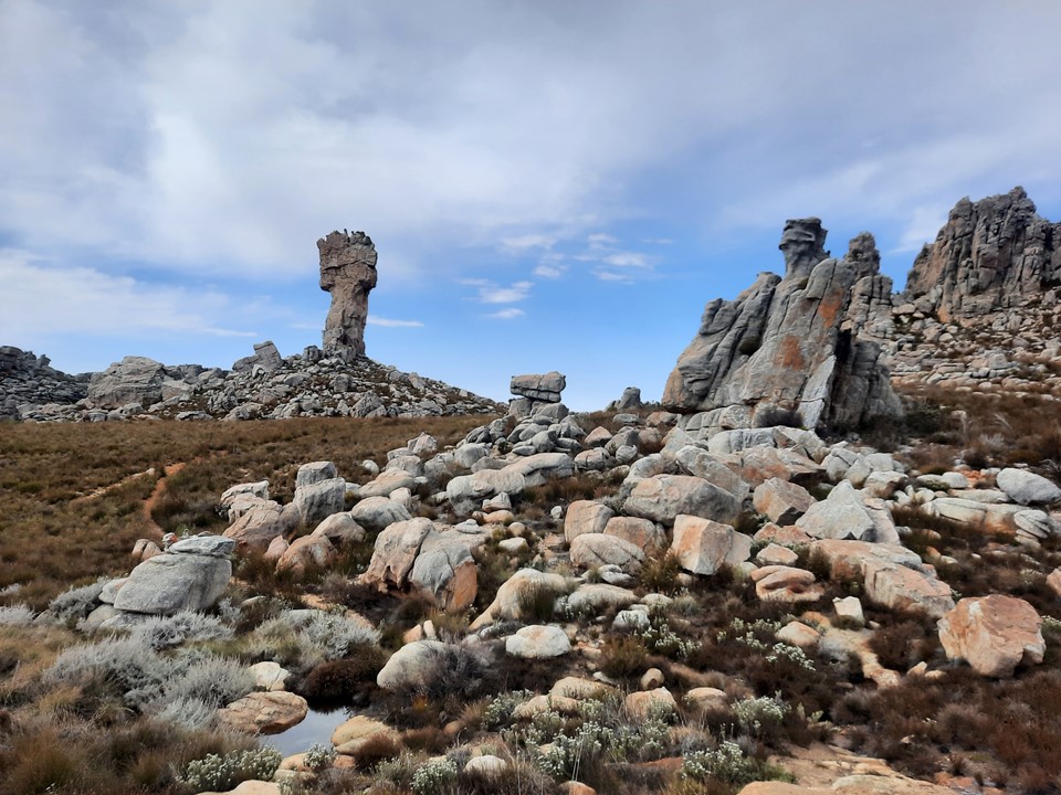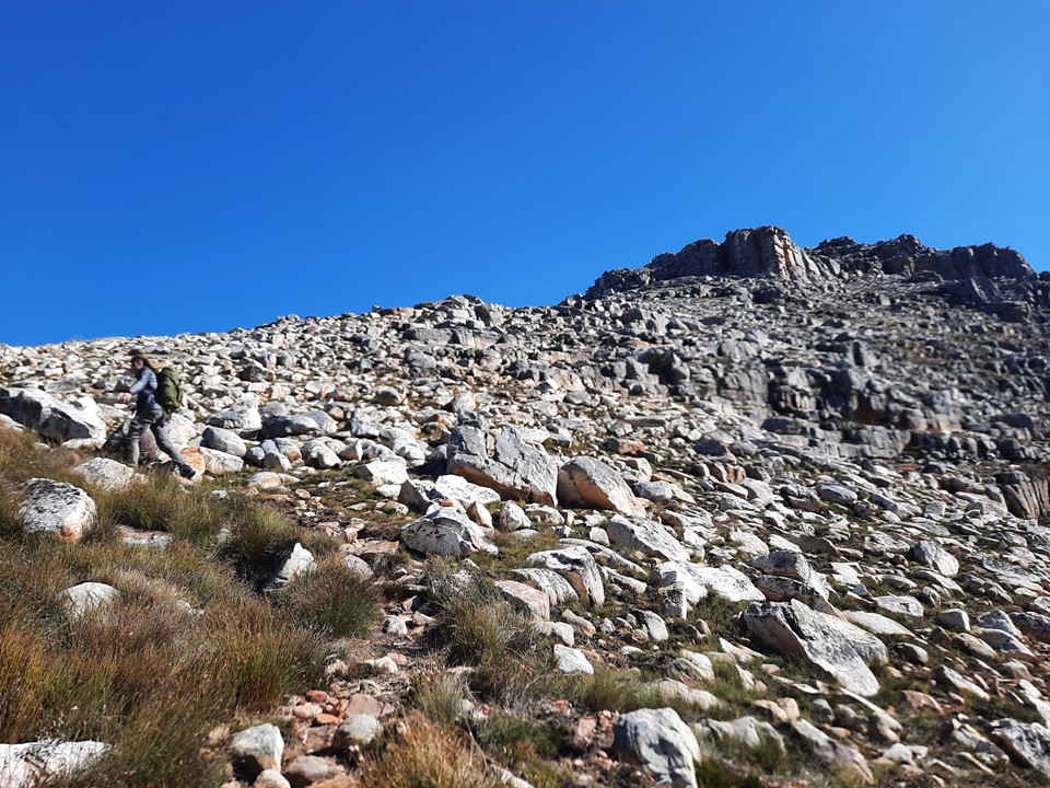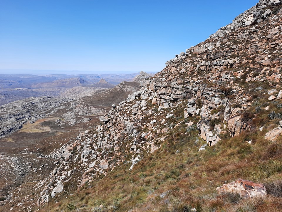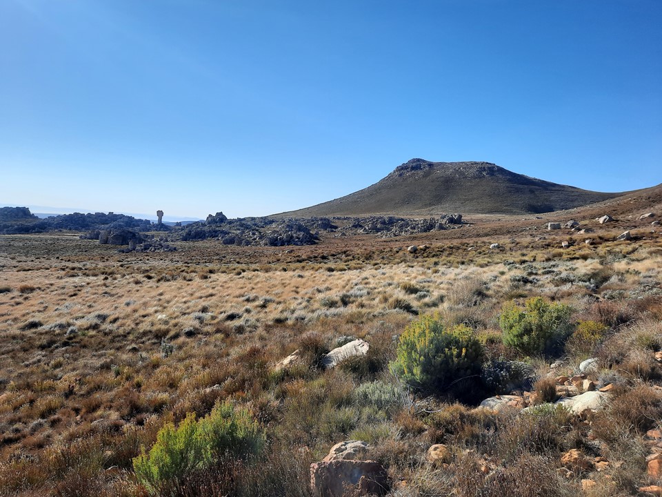As we got to the top of the valley, the ground eased off, and we would finally start to see the famous rock formations found below Sneeuberg.