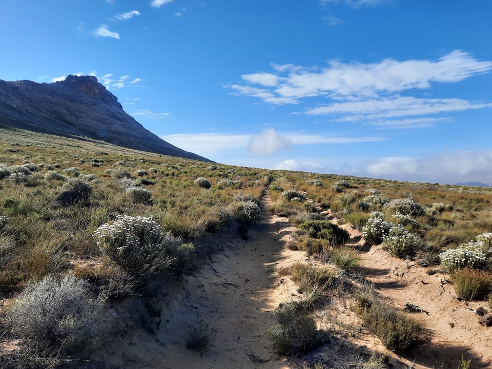 With a number of cars parked at the starting point, we knew we wouldn’t have the mountain to ourselves. The hike starts by following an old jeep track, before heading up the Welbedacht River. The initial ascent is fairly steep, but on a good trail, it is easy to keep a fairly good pace going.