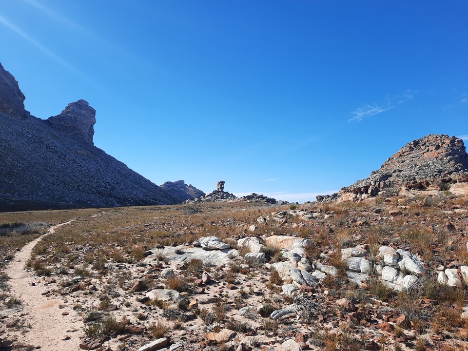 We continued across the boulder-strewn saddle between Tafelberg and The Spout. There were cairns, although there were clearly multiple lines that people use through this section – with at least three different cairned lines.