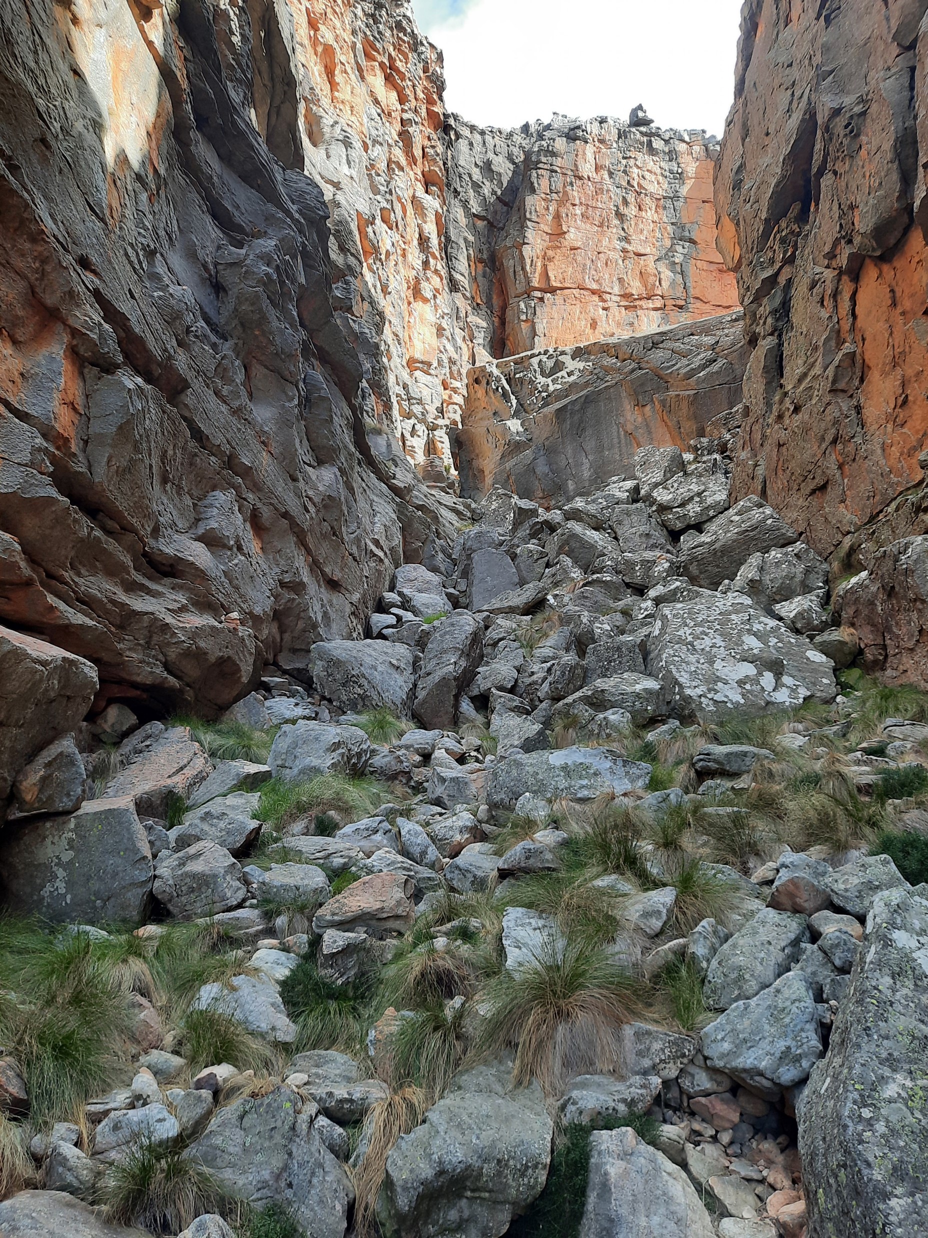 As we got higher up, the clouds began to clear and the morning became a bit hotter. We expected to find water fairly high up on the route, so we weren’t too worried about keeping our bottles full. As it turned out, there wasn’t much water above Welbedacht Cave.