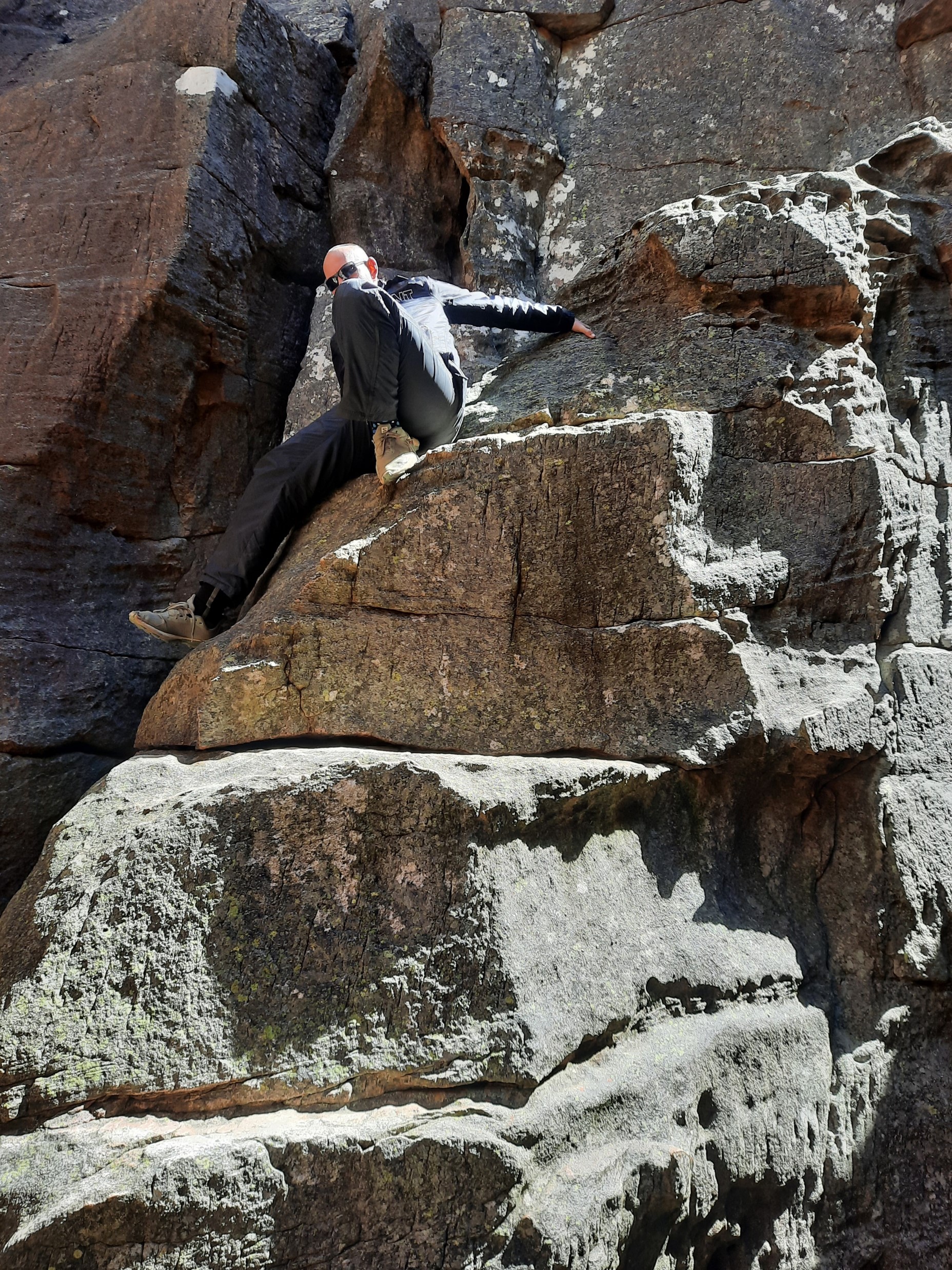 I had not researched the route in detail beforehand – there isn’t much information on this route online, so I didn’t know this was coming. Rudi and Flip had told me about it the day before, but I wasn’t expecting anything too hard, seeing as I assume anything significant would have been mentioned in the writeups. If I had known it was coming, I would have prepared my mind for it and likely would have been fine. We also could have brought two micronuts and used the gear I had brought up to have a bit of safety gear – but such is life.