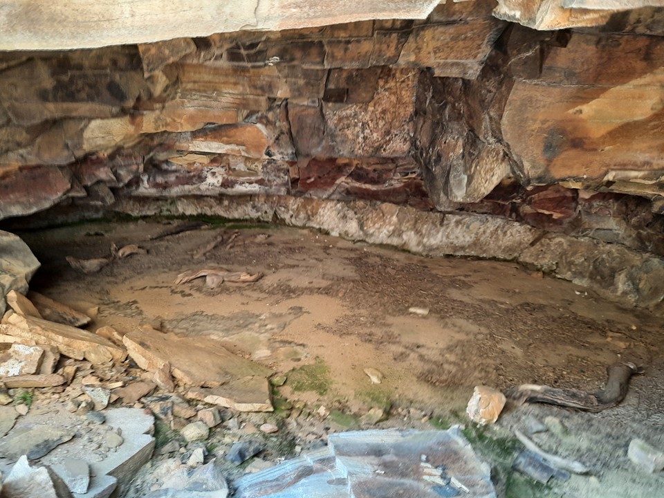 It was very windy, something that I wasn’t happy about seeing as I would soon be on exposed ground. At the nek I saw a small rock wall – and immediately knew there would be a cave back there.