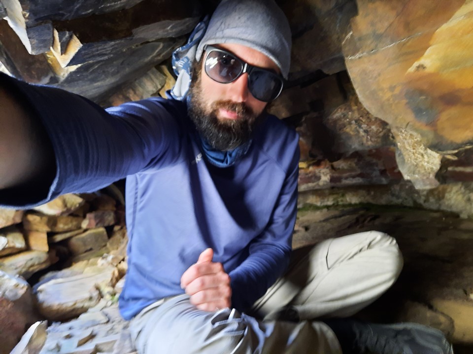 I decided to spend the night in the cave. I had good signal just around the corner, and it was out of the wind. I sat on a spot around the corner enjoying the view and having something to eat. Then I crawled into the tiny cave, realised I could barely even sit up at the point with the highest roof, and that the floor included so many large rocks that I would have to sleep in a funny position just to be able to lie down.