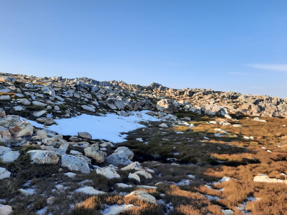 The trail died once I reached the top of the ridge. Vegetation was low, so going was still easy. I did see the odd cairn and even bits of faint trail, but I knew I basically just had to follow the top of the ridge.