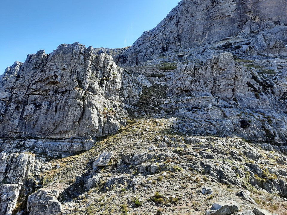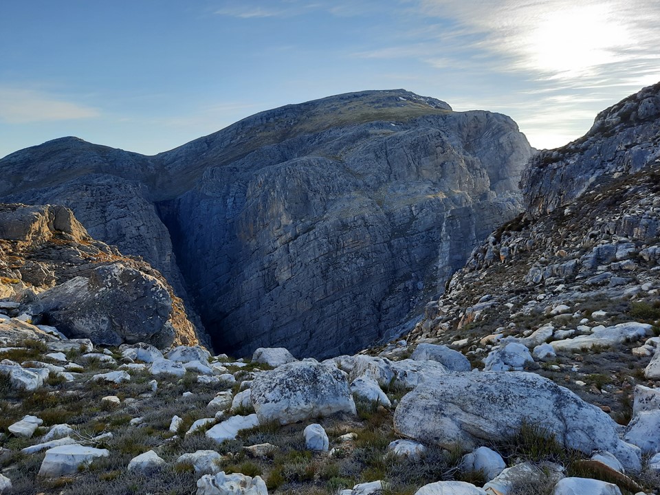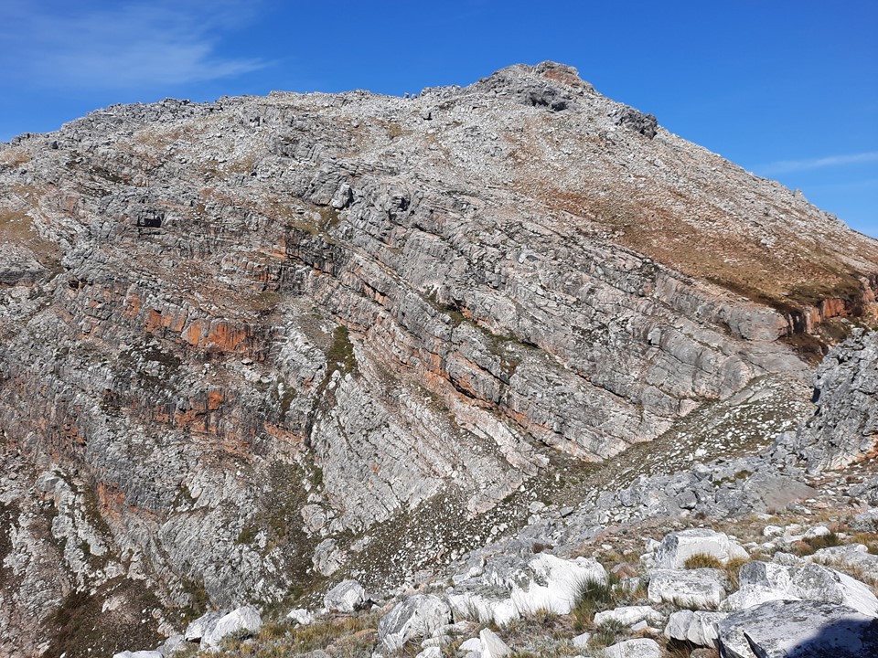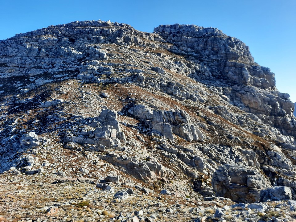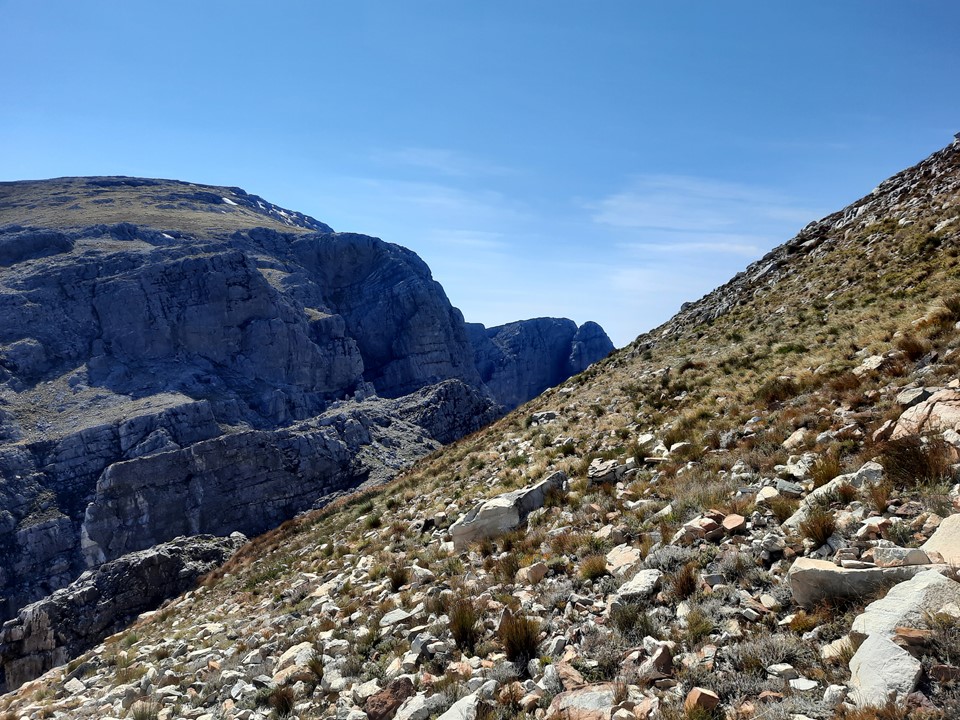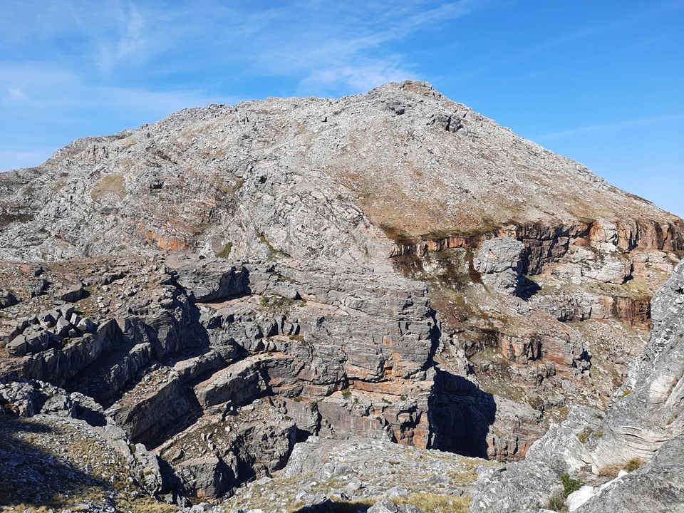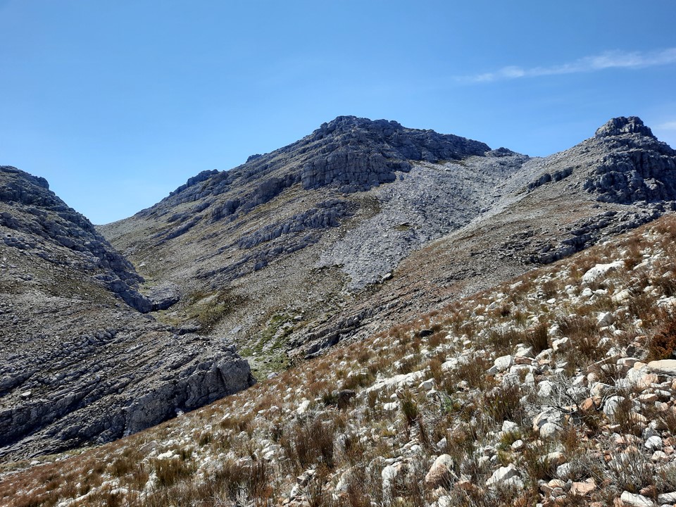 While the Fonteinjies side of Horseshoe had been relatively easy ground, the Brodie side was loose rock between cliffs with a large drop on the side. Fortunately I have crossed this type of terrain many times, and knew how to pick a good line. I also know that you never rush on ground like this – a poor foot placement can lead to anything from a twisted ankle to gravity reminding you which way is down.