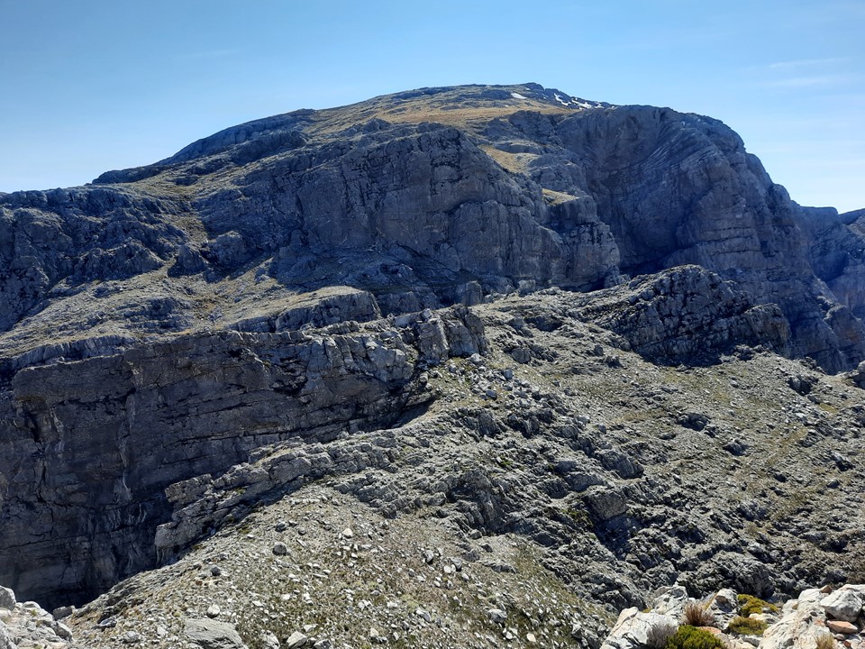 Once above the lower cliff bands, the rest was a simple grassy slope to ascend – nothing particularly difficult. The wind was cold and reasonably strong, though.