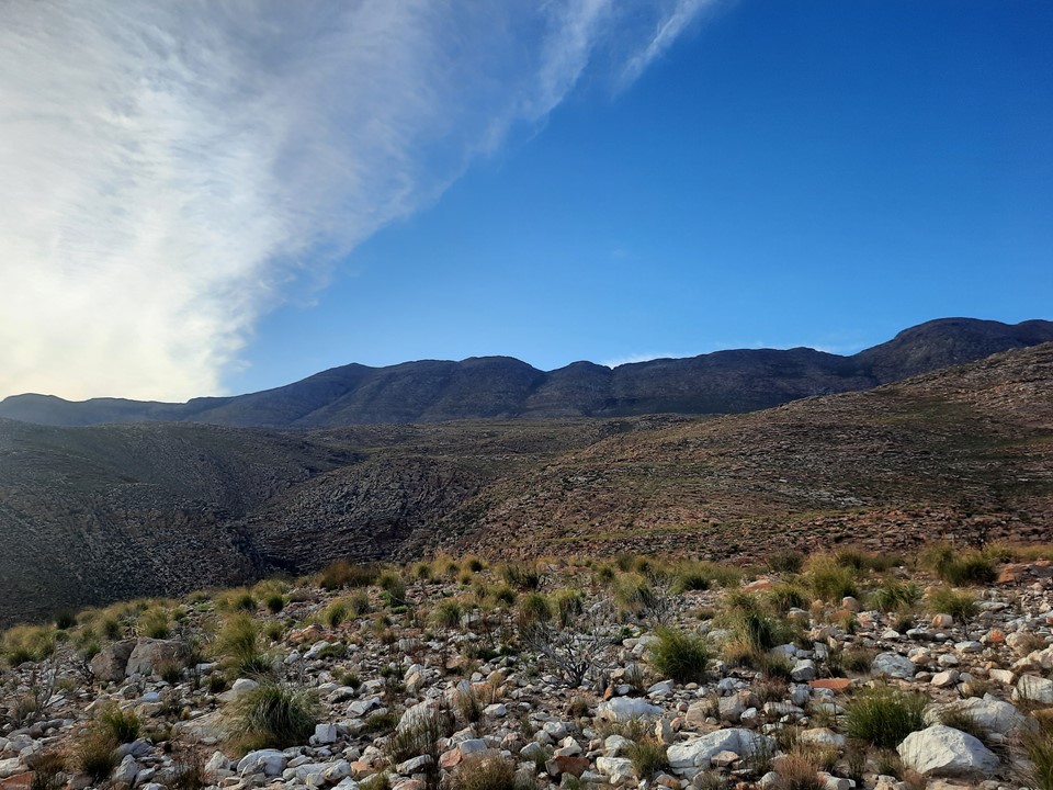 I had managed to arrange access from a place called El Yolo. It is an adjoining farm in the Eastern Cape, while the provincial border is the border of Cape Nature land. I had bought my permits and sorted out access – but there was a catch: while there was a road all the way from El Yolo right to the summit, this road crossed a neighbouring farm, and that farmer never allows access to hikers. So I would have to follow an overgrown ridge till I crossed the provincial boundary to the Western Cape before I could use this access road.