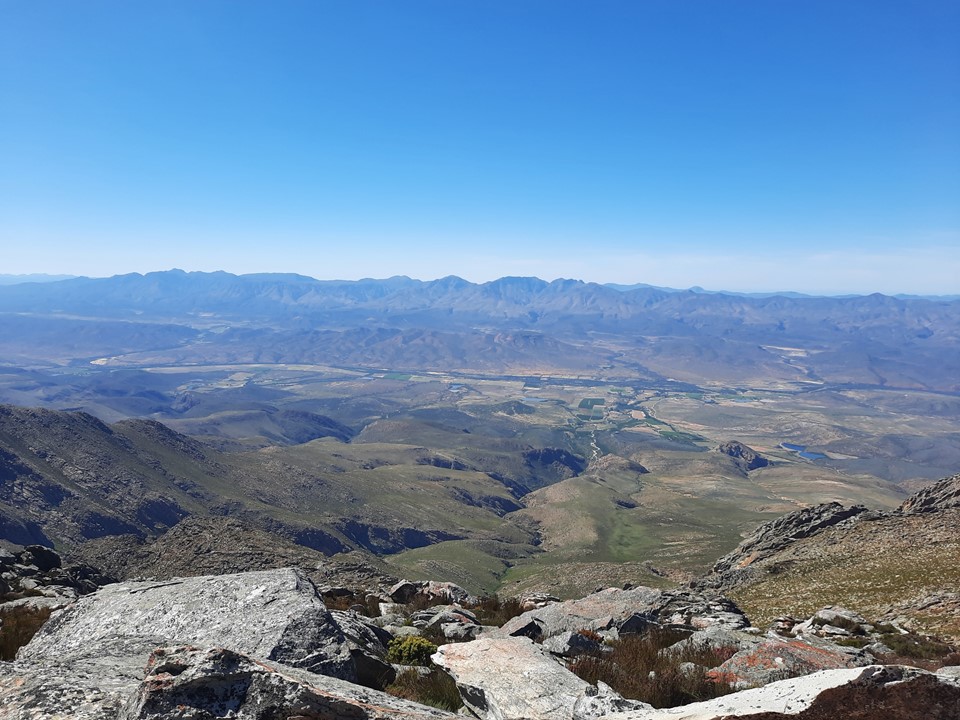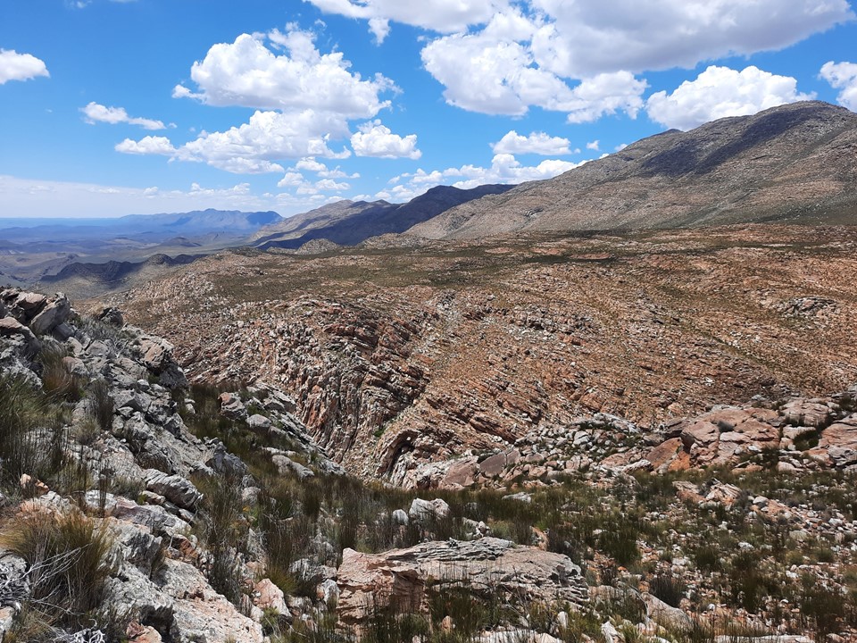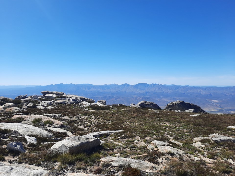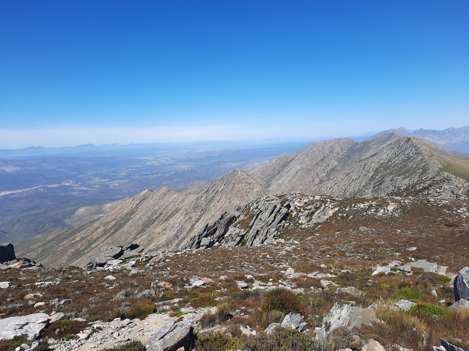 As I gained the summit ridge, I was rewarded with a great view towards the Kammanassie Mountains. I could even see the light reflected off the mirrors on the summit beacon of Mannetjiesberg.