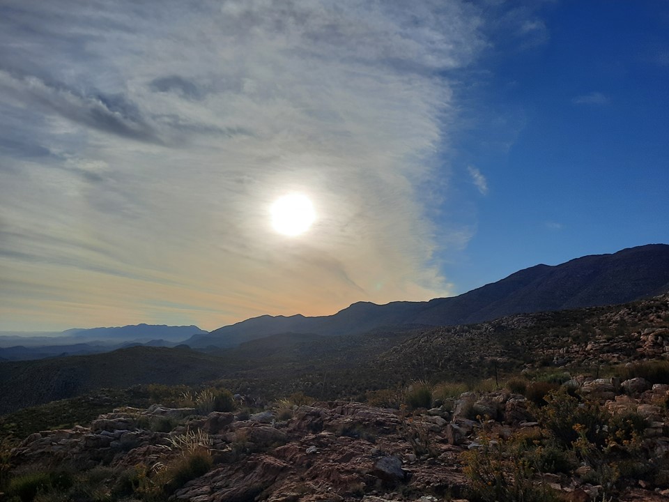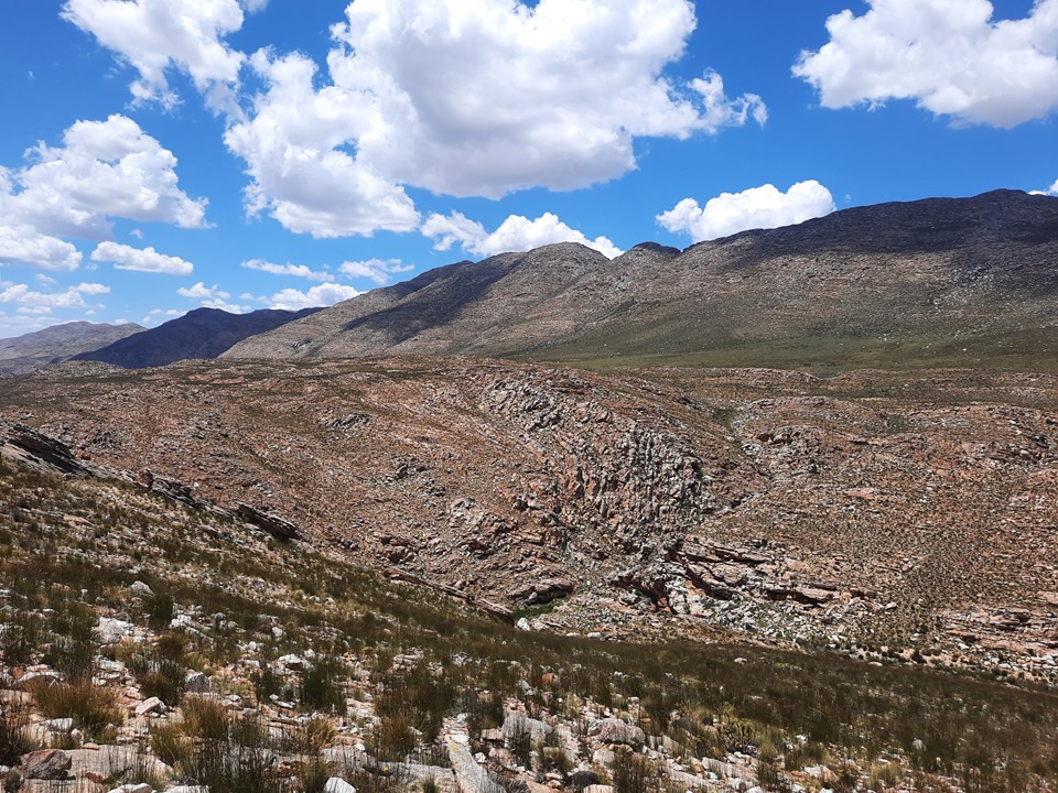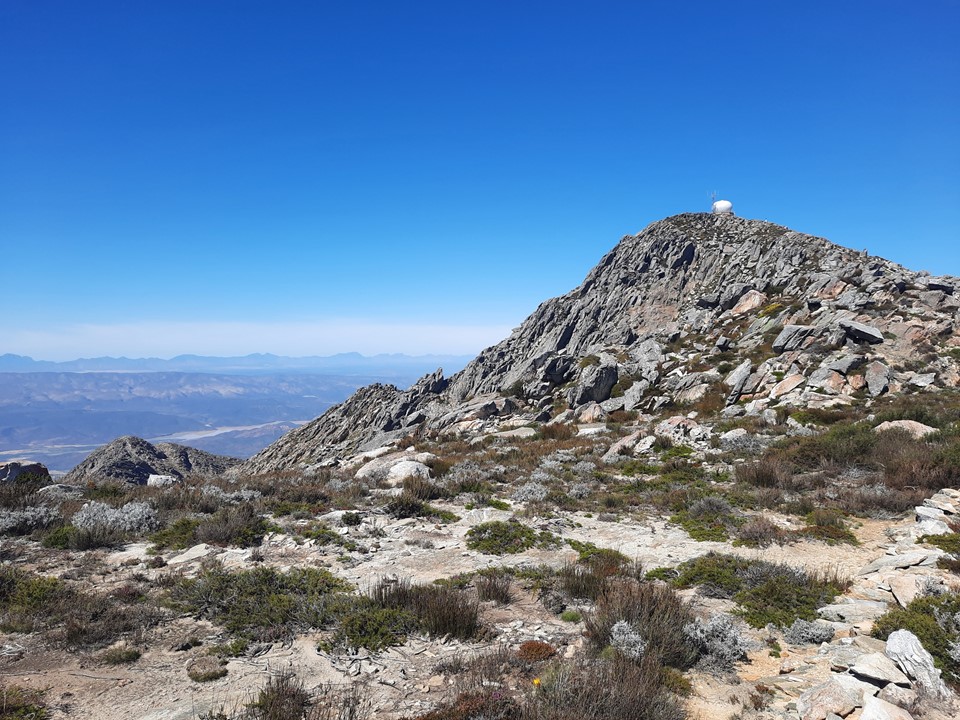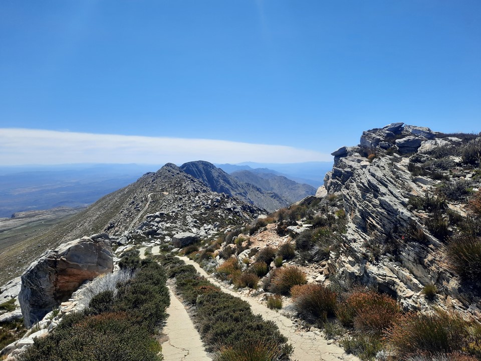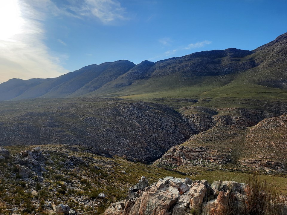 As I gained the summit ridge, I was rewarded with a great view towards the Kammanassie Mountains. I could even see the light reflected off the mirrors on the summit beacon of Mannetjiesberg.