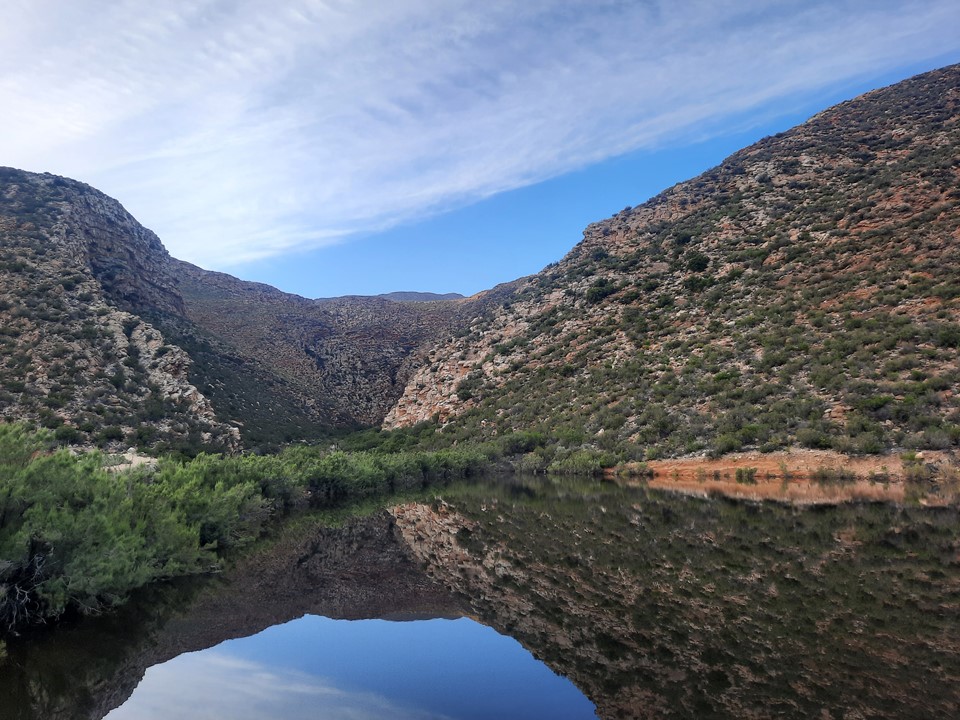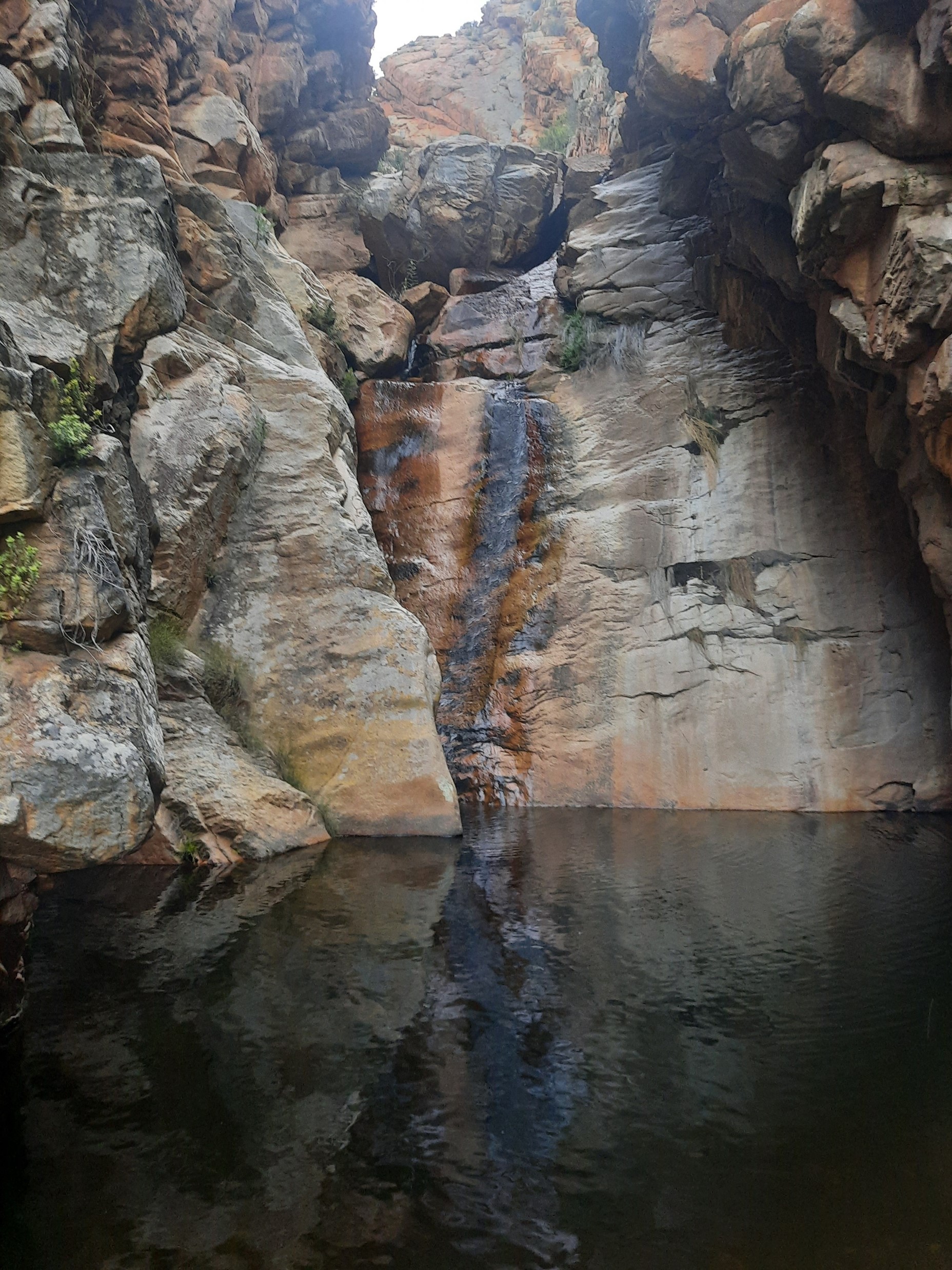 After having a shower and putting on clean clothes, I went to inform Helene that I had returned safely. She invited me to join her family for a braai that evening, which was really nice. I was also taken to the lower Hagaskloof Falls, which were more impressive than I had anticipated. It’s hard to capture a kloof in a photo – its about being surrounded by cliffs more than what the cliffs look like in isolation.