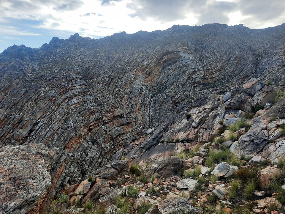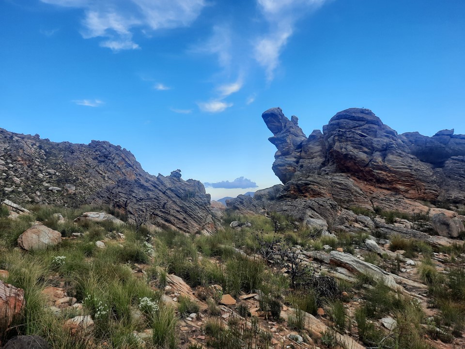 The route follows a ridge initially – with some very impressive rock formations to the side. It has the folded chaos of the Cape Mountains that I have come to enjoy.