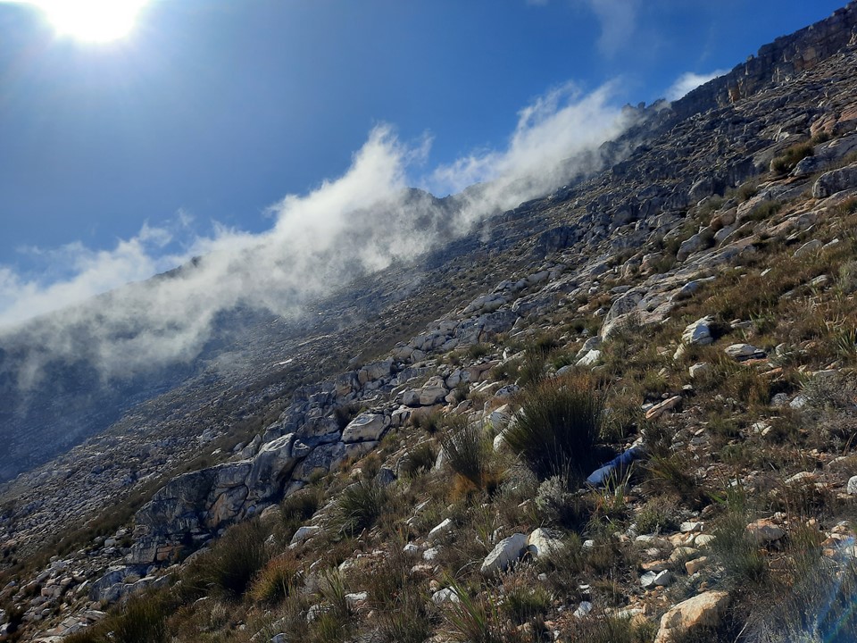 Mist continued to come and go as I climbed. From one perspective – I will likely return and do the full Towerkop/Seweweekspoort Traverse some day, so I knew it was fine if I missed the view this time, but it’s always a shame to climb a mountain when you aren’t likely to get much of a view.