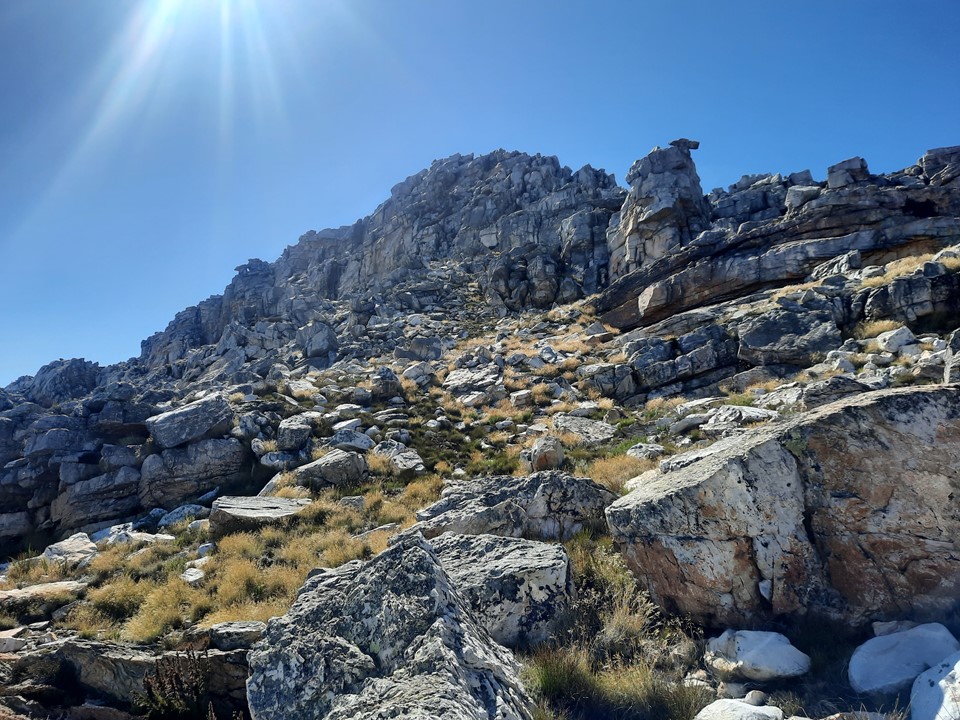 The route holds to the same ridge for a long time – but as you get higher, the gradient relents and you finally get a view of the summit. It’s funny that I was expecting it to be easier – its an ultra-prominence mountain and a province high point, the only peak in SA that can boast both of those stats – so I was happy that the “easy” route up the back was still not trivial.