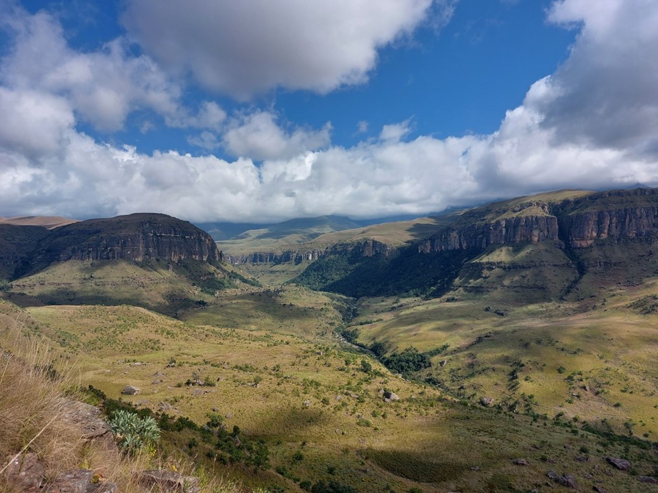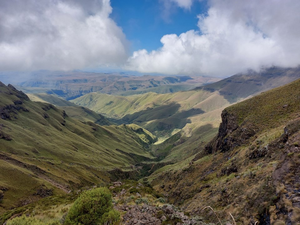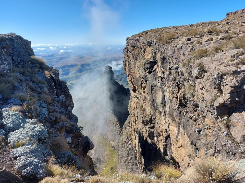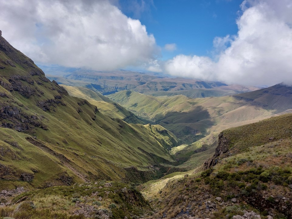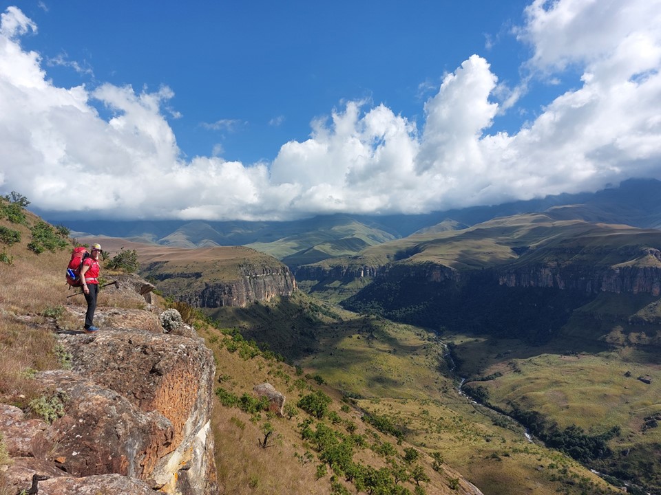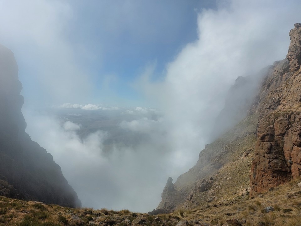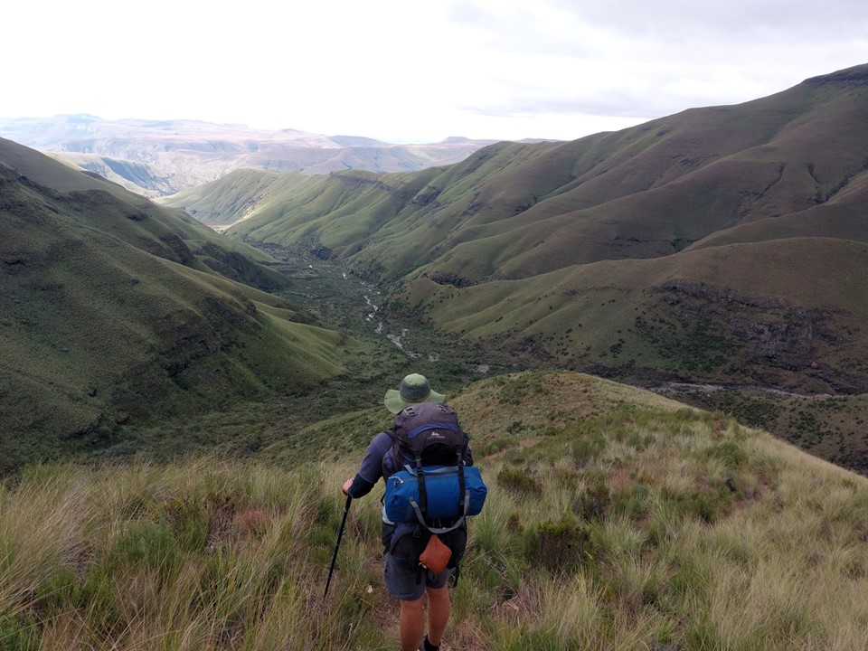 I always take the escarpment edge line down from Mafadi – it is one of the more spectacular routes in the Drakensberg, definitely worth the effort. I’m not actually convinced that the gully variation is easier or shorter.