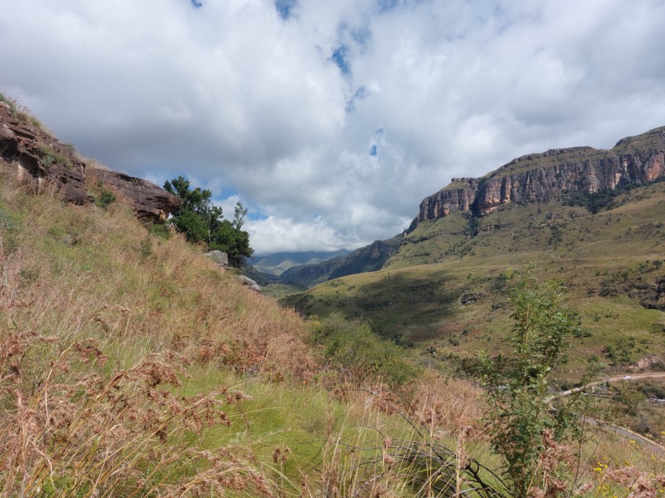 We stopped for a break in the gully before starting up the trail to the left (south). There is no official name for this pass, but seeing as it is usually paired with the Northern High Approach, and literally goes around Corner Peak, I like to call it Around the Corner Pass. While the name isn’t accepted by everyone, it largely seems to have stuck on pass lists. The turnoff is about 20m above where the Northern High Approach joins the Corner Gully – if you are paying attention, it is very easy to spot. The trail seems to have been established by locals as an alternative to Judge Pass. I have done it a few times and rate it one of the better Drakensberg passes in terms of both scenery and quality.