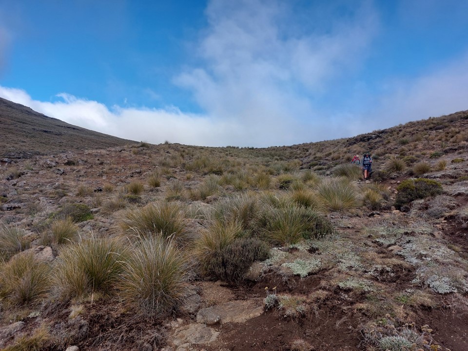 The slog up the ridge was slow, as usual – while not the steepest ridge on the escarpment by any stretch of the imagination, ascending from just below 3000m to 3300m is never trivial.