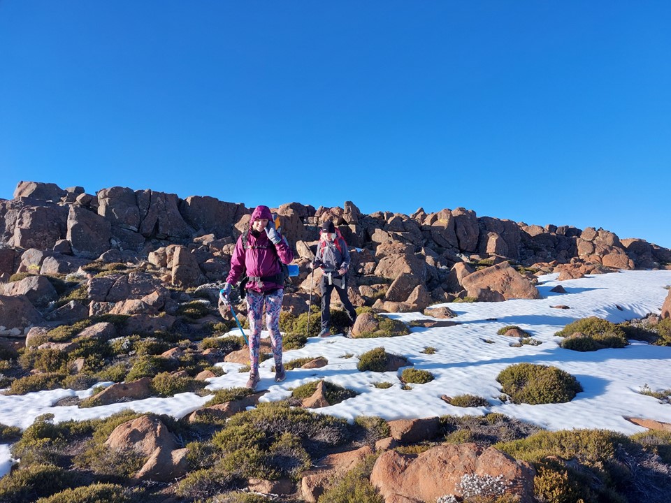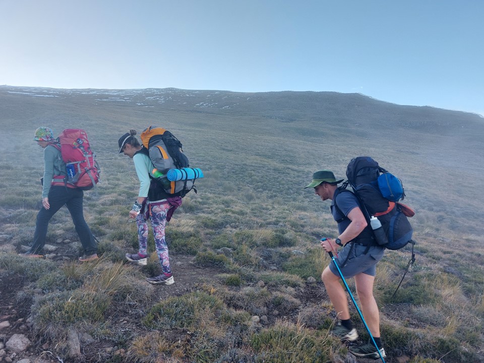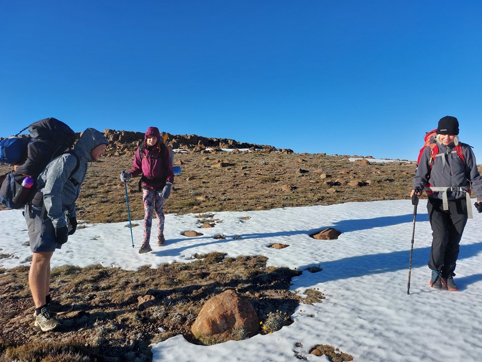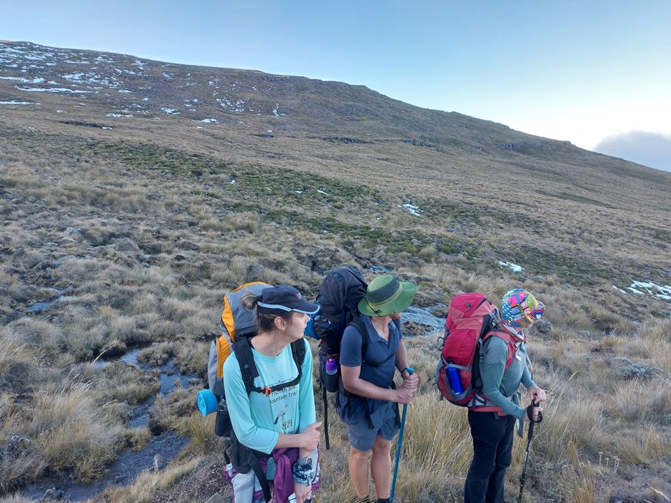 Liezl, Verity and Tim joined me for a three day attempt at the summit. The hike started with a bit of champagne for Verity’s birthday, before heading up Boundary Ridge towards Centenary Hut.