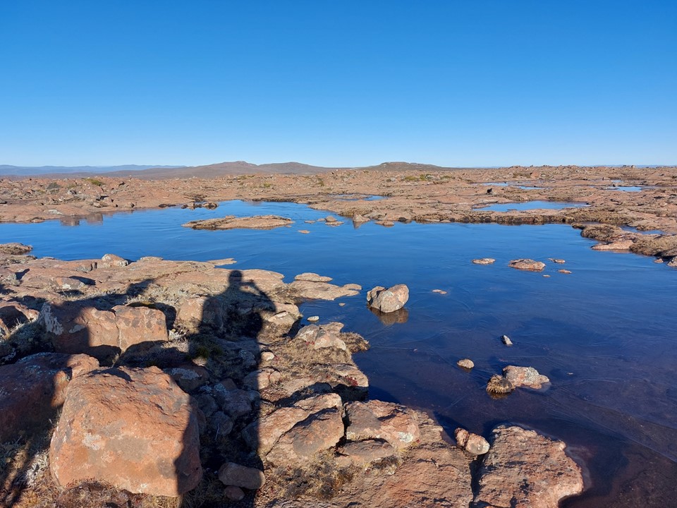 The pools on the top were frozen, with some snow around as well. I made the traditional “let’s all go to the highest point” joke – seeing as the summit is very flat and the actual highest point is practically impossible to spot, it always looks like the other side of the summit. To be safe, I like to walk across the entire top.