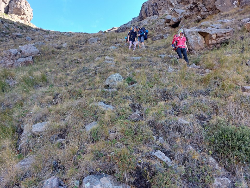 I was relieved when we eventually reached the river crossing – I knew from here we would traverse out onto the ridge off the Molar and would follow a good trail down the last half to the valley below. This is where I had made a bit of a miscalculation – despite having a team of fit runners, the continuous steep descent of a Drakensberg pass on a gravelly trail is not what they are used to. The final descent to the river was thus slower and more painful for the team than I had anticipated. I’m fairly certain that I will have rocks thrown at me if I mention that pass name in their presence again!