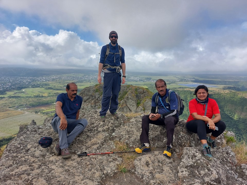 I reached the summit, with the others getting up just after me. Usually on a summit one questions whether or not the surrounding peaks are higher – although in this instance I had no doubt that the middle peak was in fact the highest of the three. Rempart in the distance was obviously higher, but it is the 4th highest peak on the island.