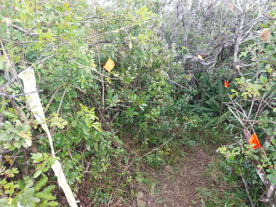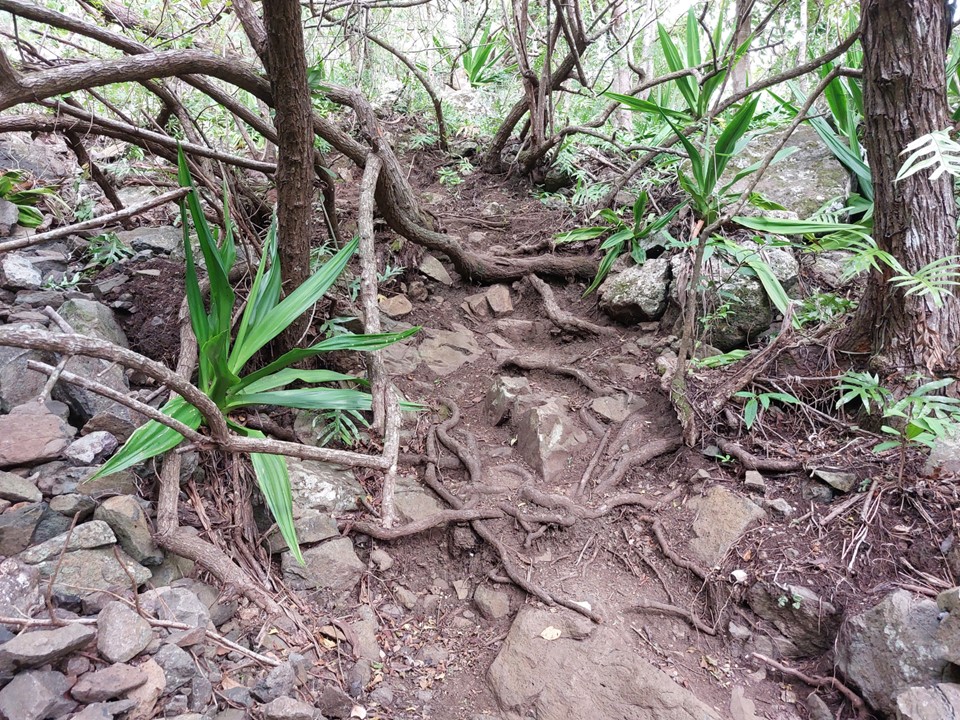 The middle summit is the highest and easiest. The trail zig-zags from the saddle. With the ridge being very narrow, there is fall potential on both sides – so the slippery ground wasn’t helping! This is one of the few occasions where I wish I had trekking poles with me.