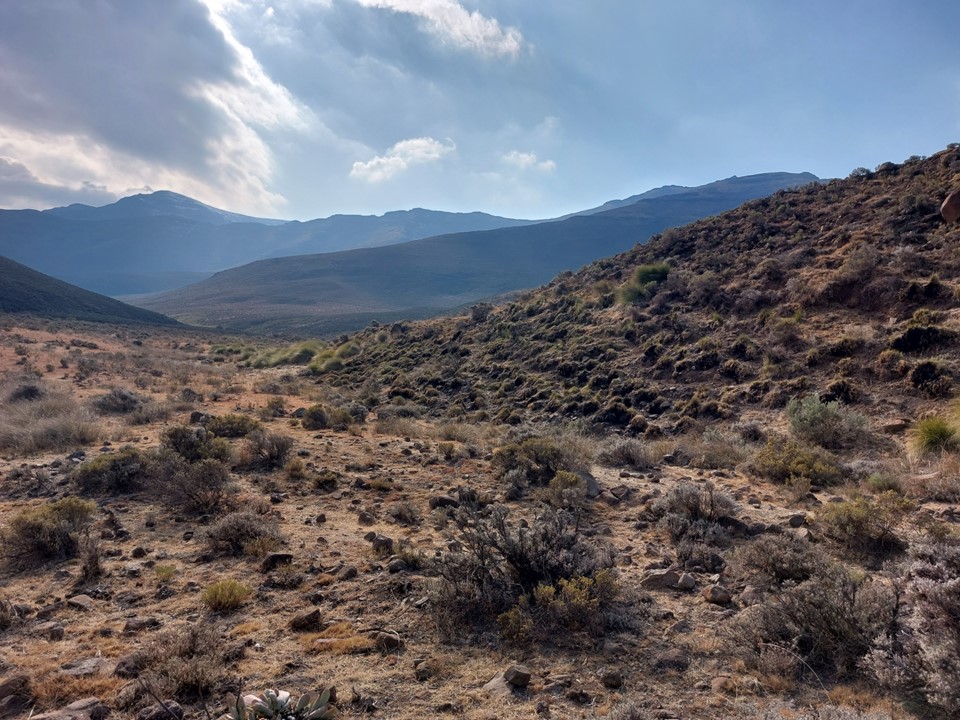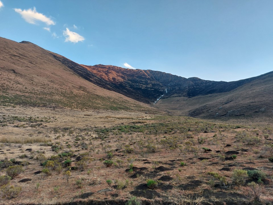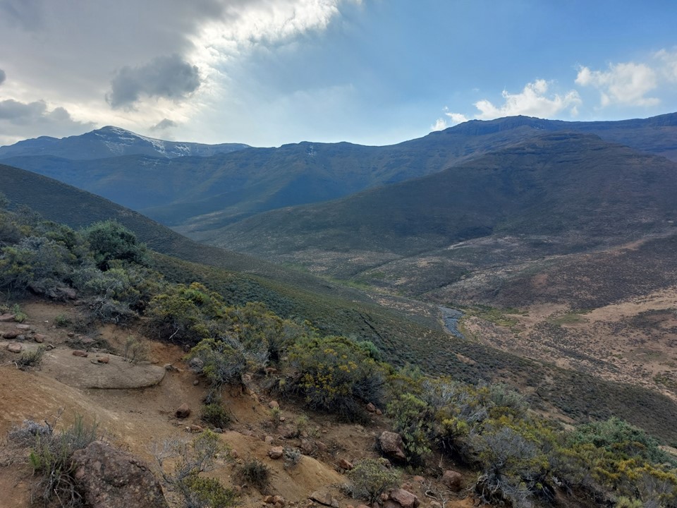 We found a good trail down into the valley. There were a few kraals down this valley, which explained the really good trail. I was not looking forward to the fact that we would have to cross this saddle again later in the day.