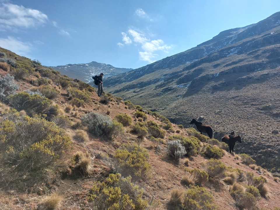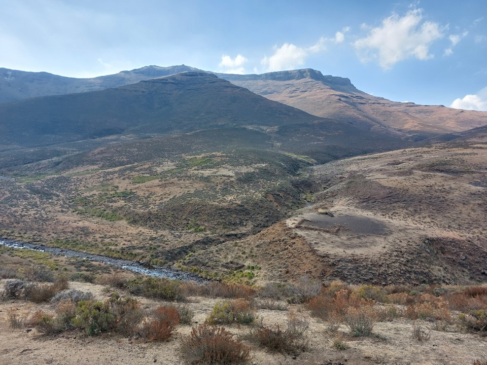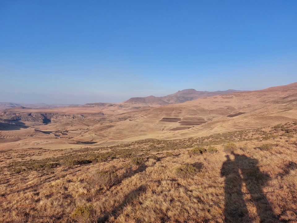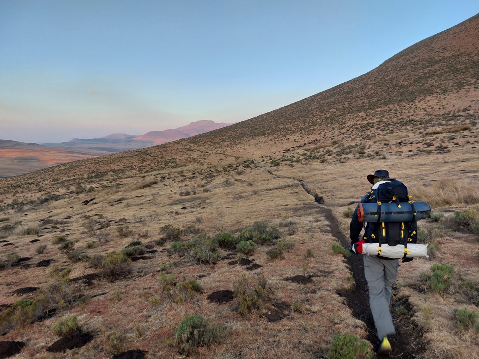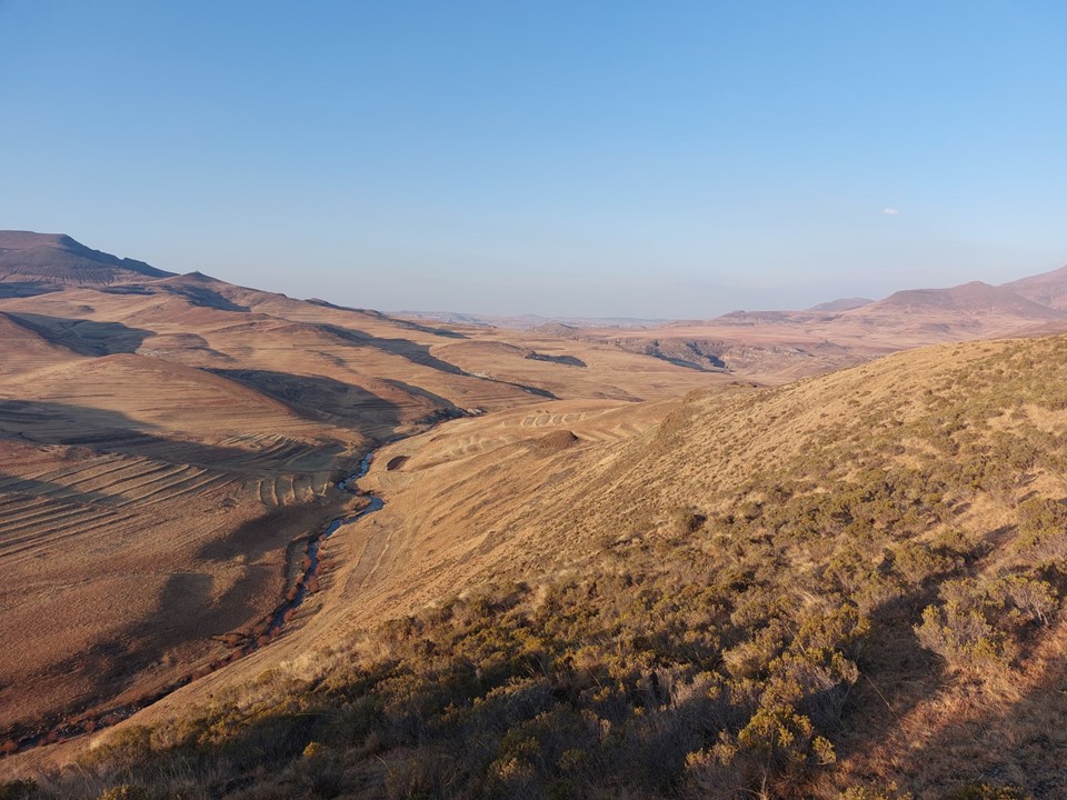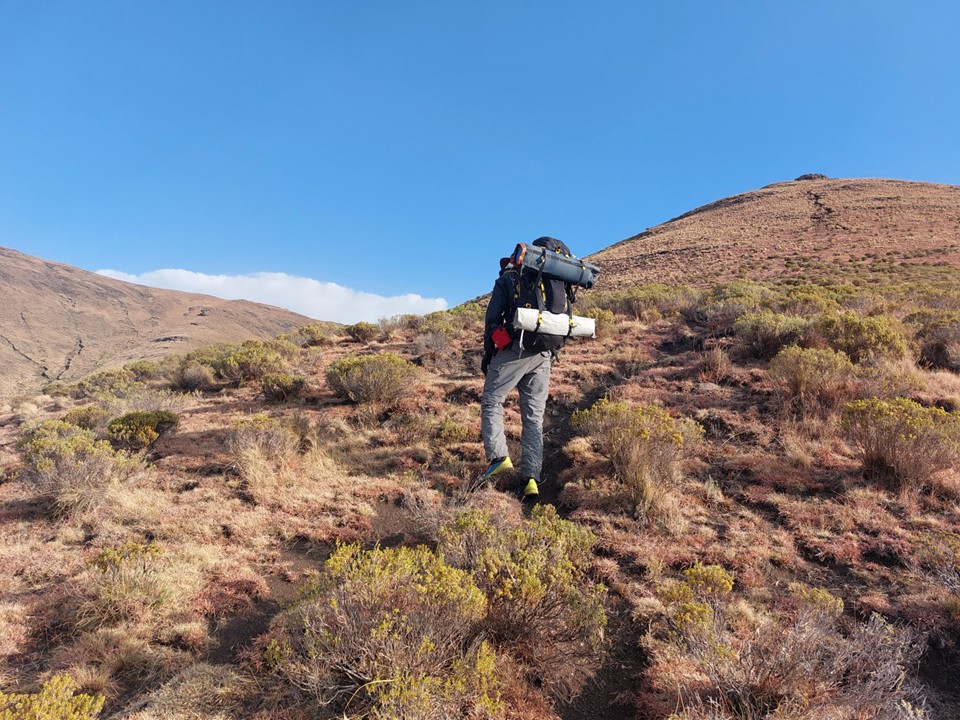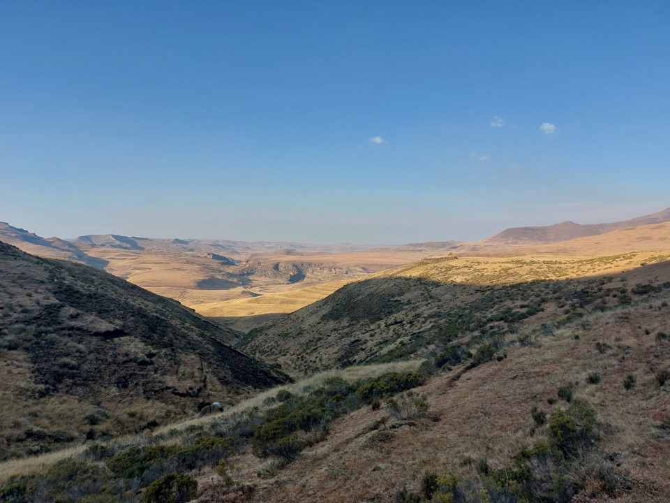 Fast forward to July 2022 – Dave and I both found ourselves with a free weekend at the same time, and thus I found myself at Bushmans Nek. The plan was simple: Friday afternoon start up Thamathu Pass, getting as far into Lesotho as possible. Saturday try and follow the trails we could see on Google earth to get to the valley below the peak, this would include climbing to 2700m, dropping back down to 2400m and then climbing to 3416m, before having to reverse the route back towards the top of Thamathu Pass. Sunday would be a simple hike back out via Thamathu Pass, followed by the long drive back home.