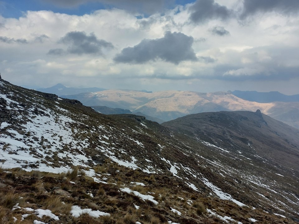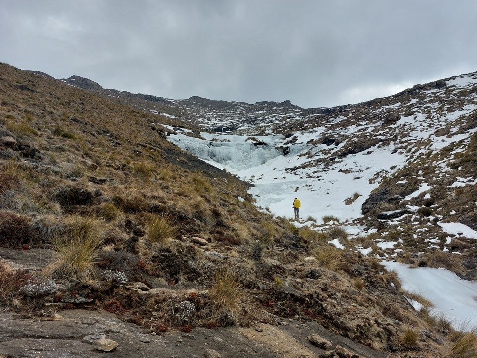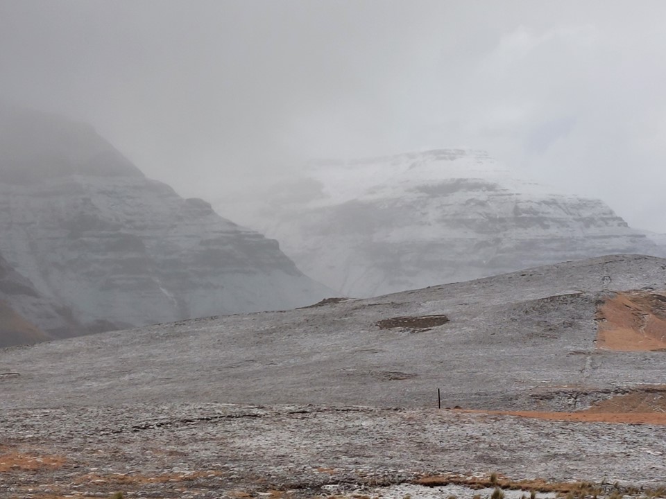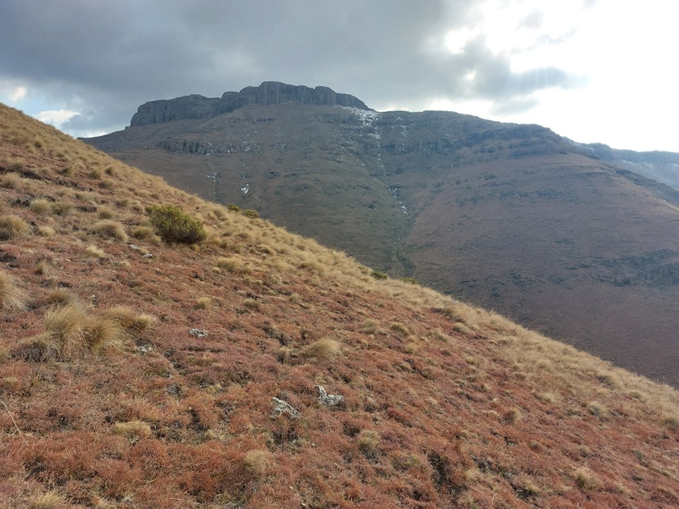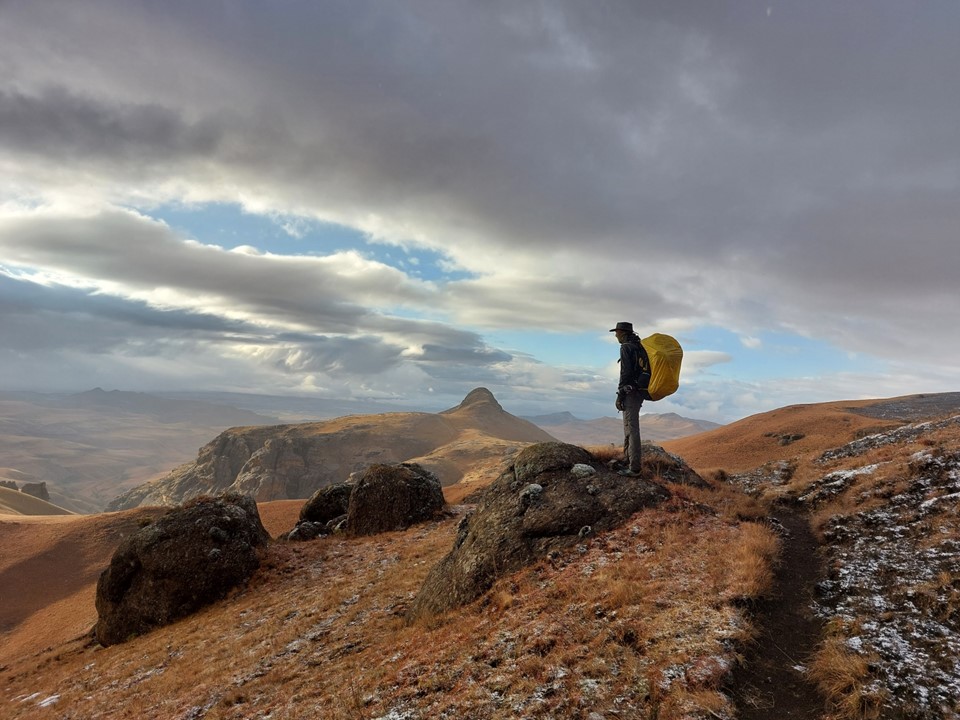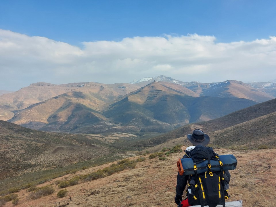 Reaching the saddle was a bit like getting slapped in the face! Makoaneng was straight in front of us, and it was enormous. The snow on the ridge provided some amazing views, but we could also see that this ascent would not be trivial.