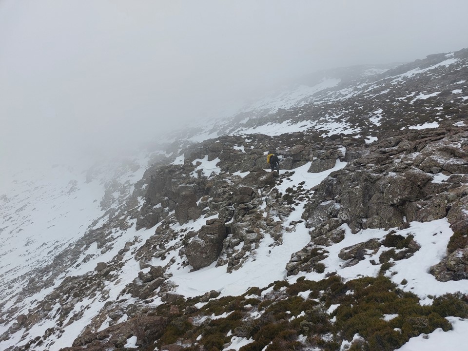 As we continued up the gully, we saw more ice and snow. Between the cold wind and the fact that ascending steep slopes like this is very draining, I was struggling a bit.