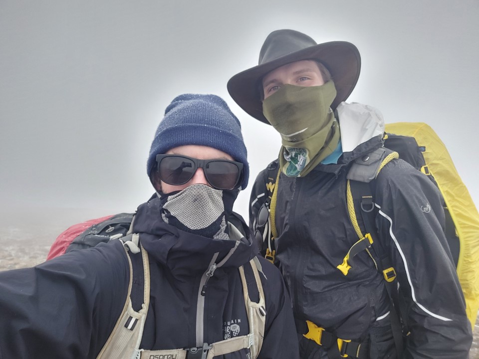 We got a few photos on the summit, but with snow falling and cold conditions, we had no interest in enjoying the view for very long. Not that we could see much in the mist.