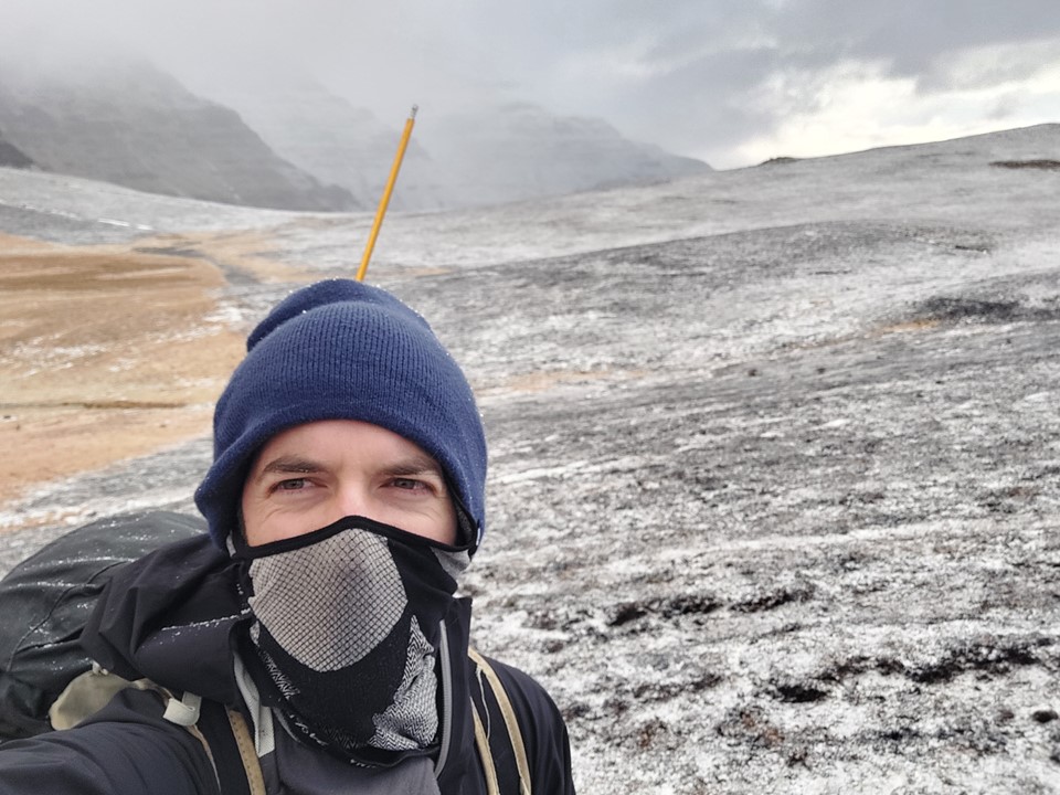 We packed up and put the tent away – one of the pole connections was frozen in place and could not be dismantled, so I had to start the day with a pole sticking out of the top of my pack.