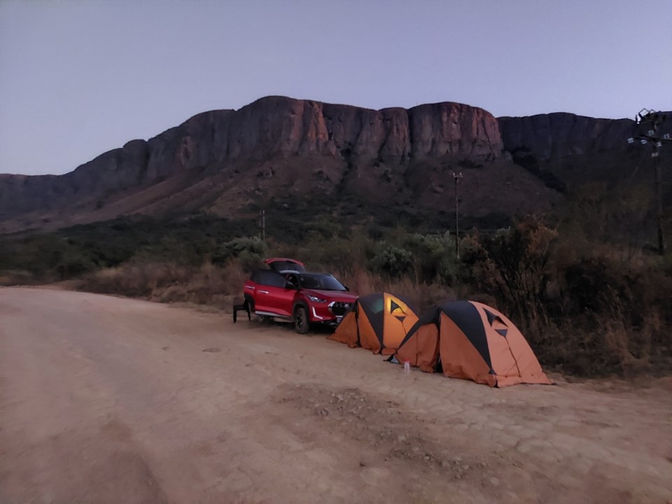 We had been told that the road to the camp was doable with a high clearance vehicle. My previous car, a Corolla, frequently crashed into small speedbumps on well maintained roads and was thus unquestionably unable to drive here. My new car has considerably better clearance – but on seeing the road I would have to drive up to get to the campsite, I realised this car wouldn’t do it either.