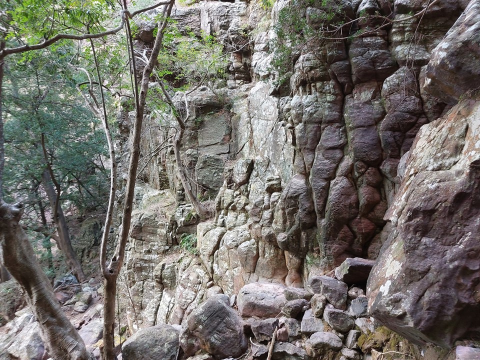 When we reached the crux, I was happy to be carrying a light rope. I rigged an abseil and we used this to get past this section. The photo above illustrates what I referred to earlier regarding the crux – while the move itself isn’t too bad, the consequence of incorrect execution could be severe.