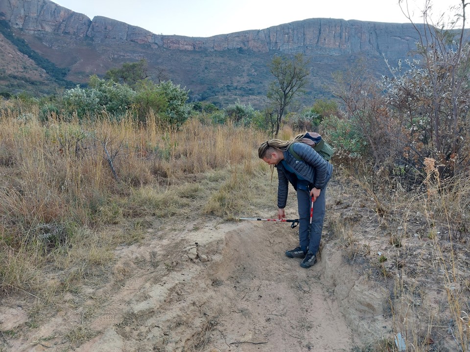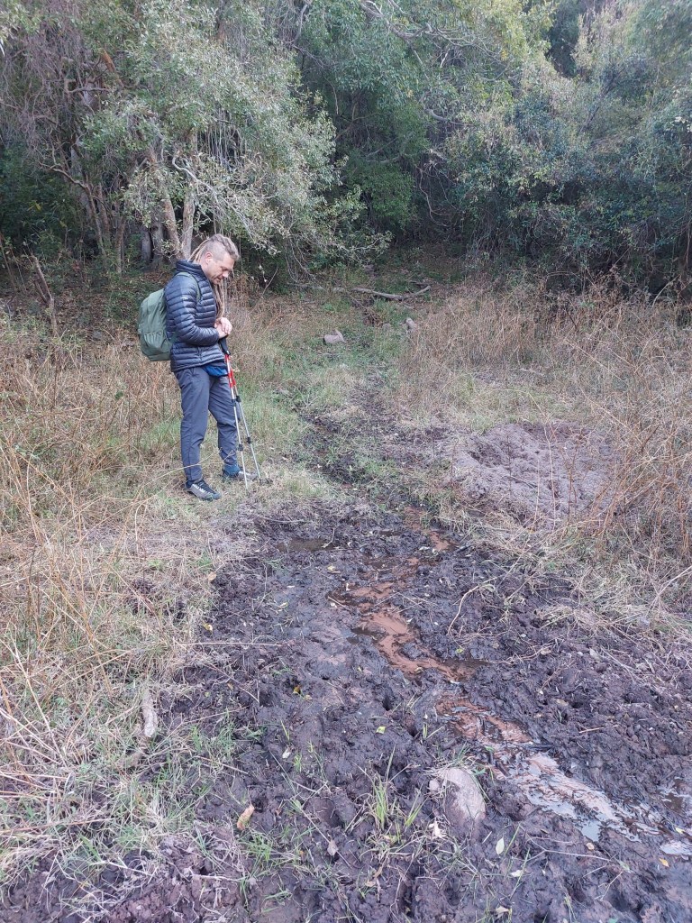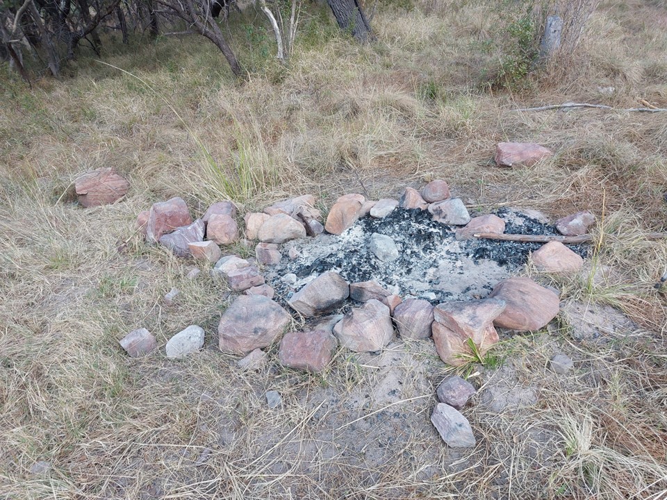 We set off just after sunrise. Even in winter Limpopo days can be very hot. We started by walking up the road to find the MCSA campsite. “Campsite” was an overstatement – moderately flat ground with a marked fireplace is more accurate, although we did know this beforehand.