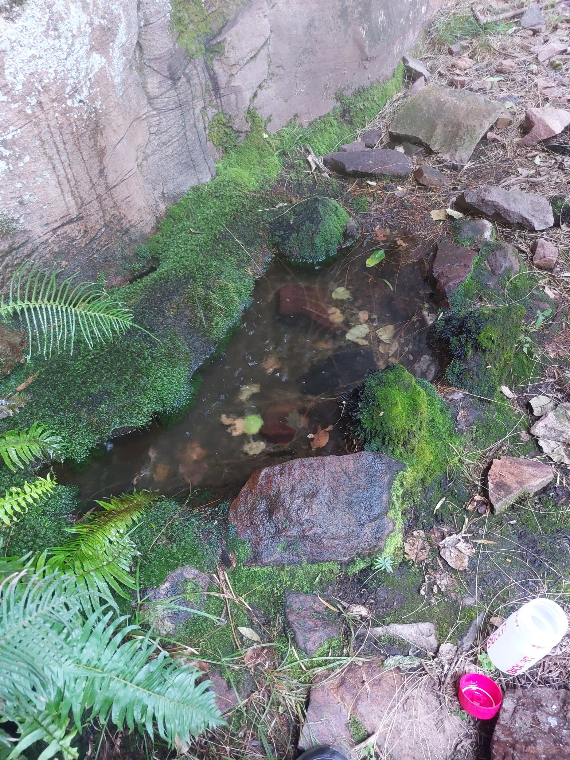 We filled up our bottles from the drip-pool by the cave before leaving the gully.