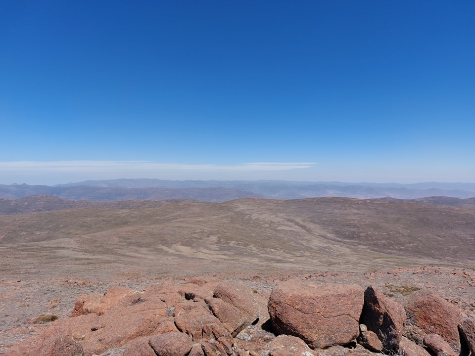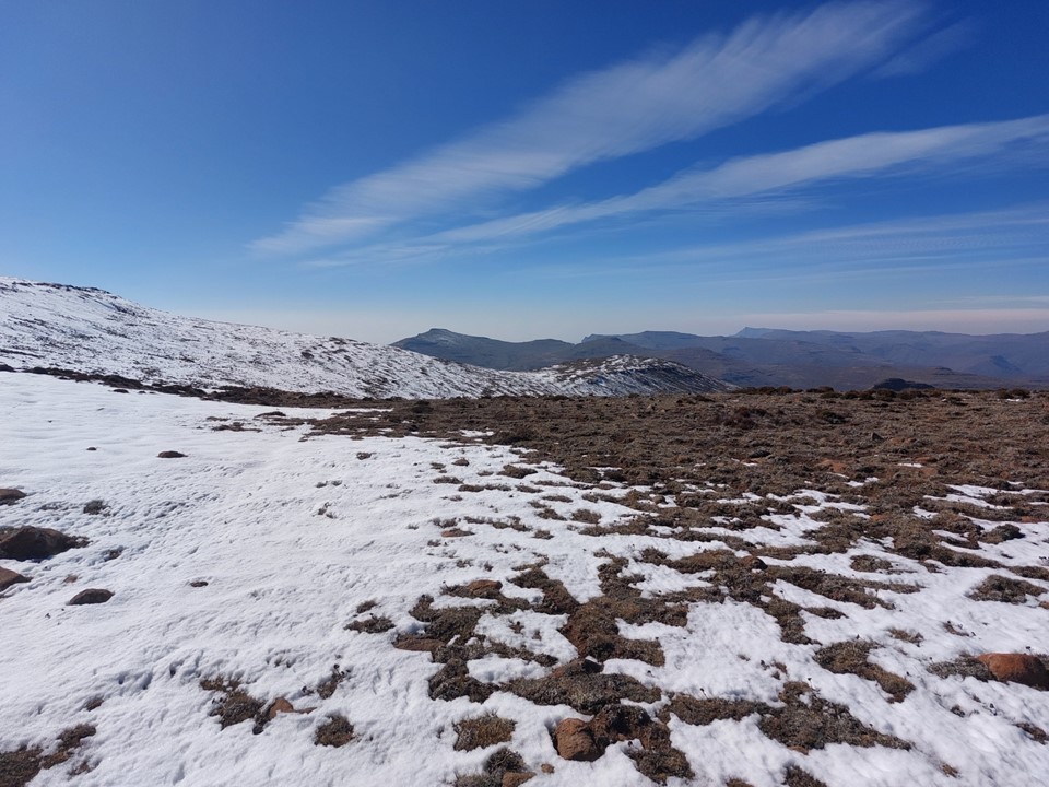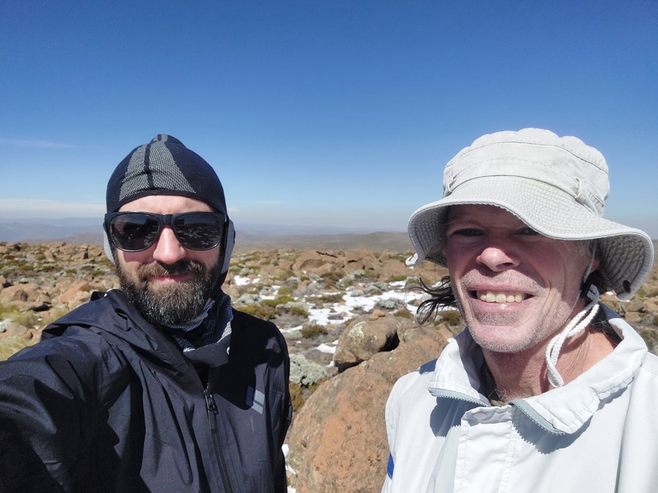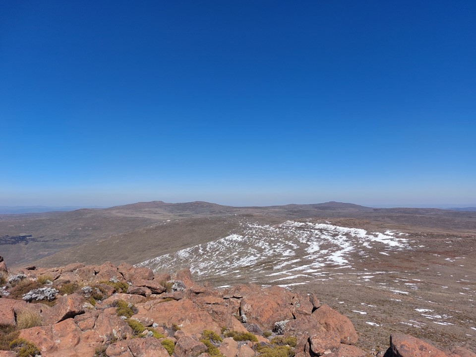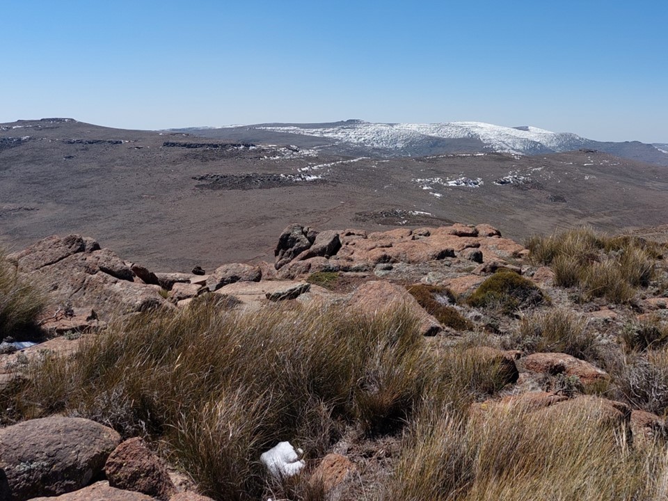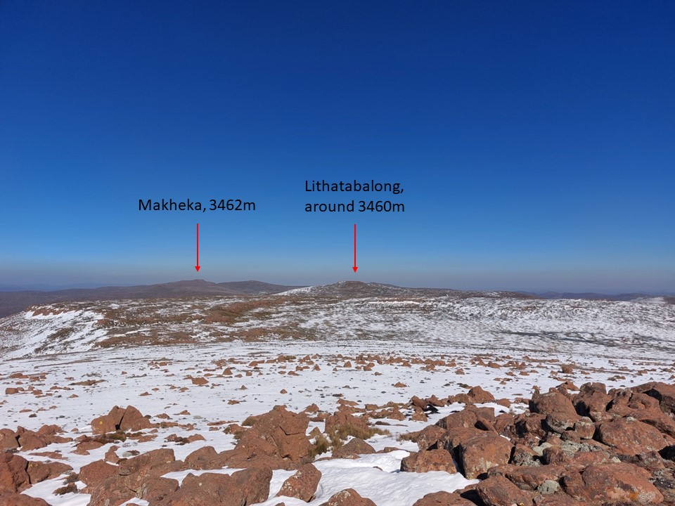 Like many other peaks that are statistically relevant, the view from the second highest mountain in Southern Africa wasn’t about to win any contest for the best view in Southern Africa – but after wanting to head up this peak for more than 12 years, it was great to finally stand on the summit. We got a good look around, some photos and both measured the height according to our GPS devices – incidentally mine recorded 3470m, 8m higher than the official height. A handheld GPS with a barometric altimeter is usually within 10m, so this would be about right. Most importantly it agreed with the ARCGis data that suggested that Makheka was higher than Lithotobolong, which is higher than Mafadi – which was good to confirm, even if all measurements were within margin for error and thus technically meaningless.