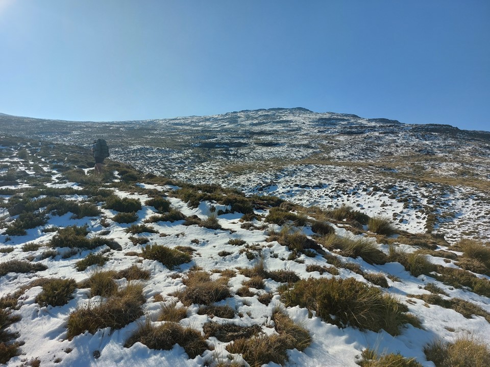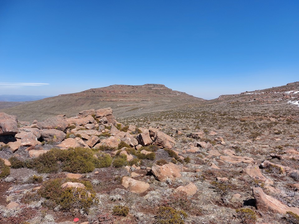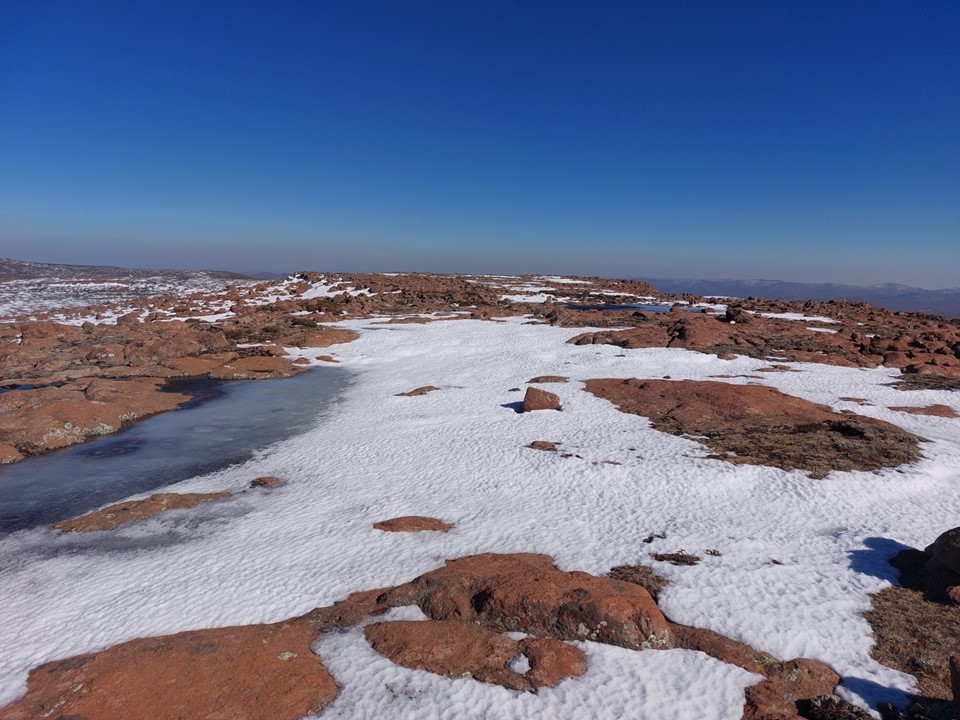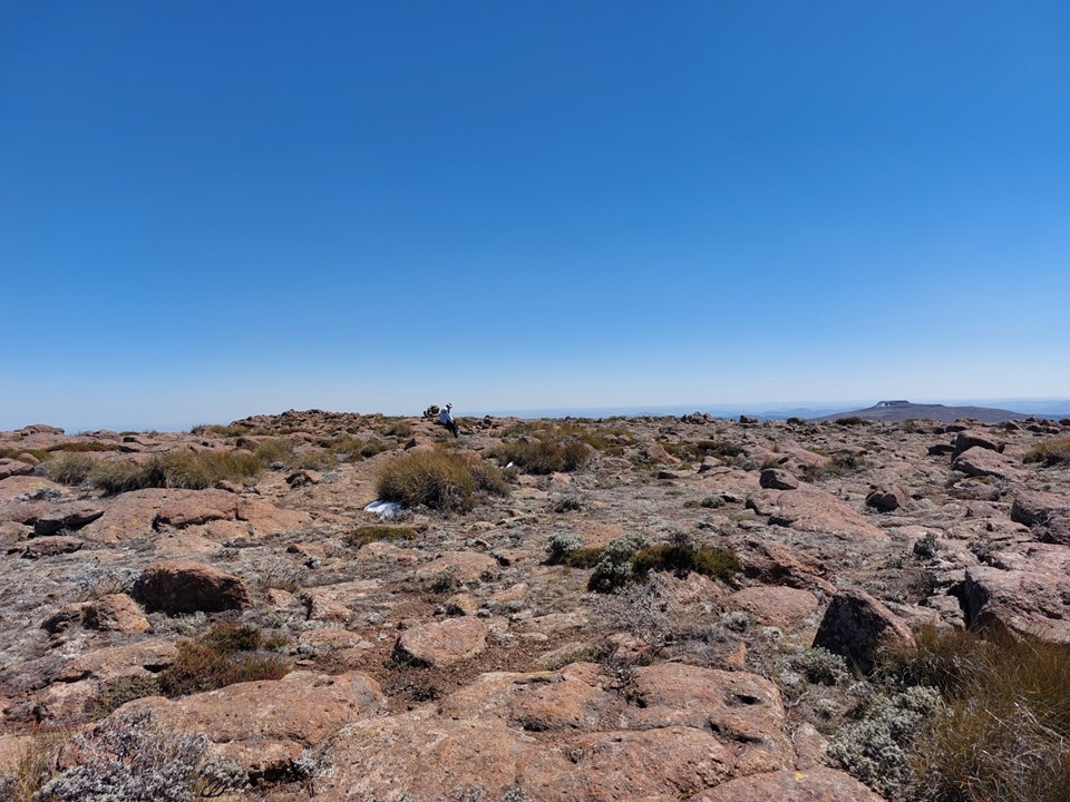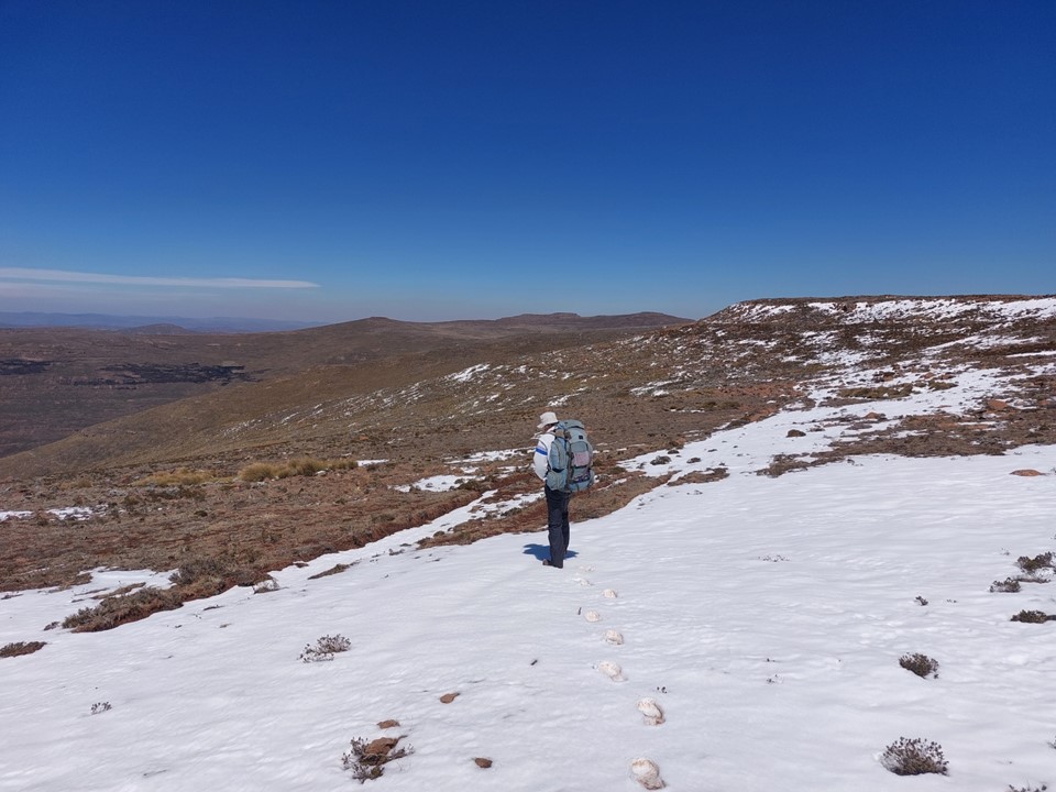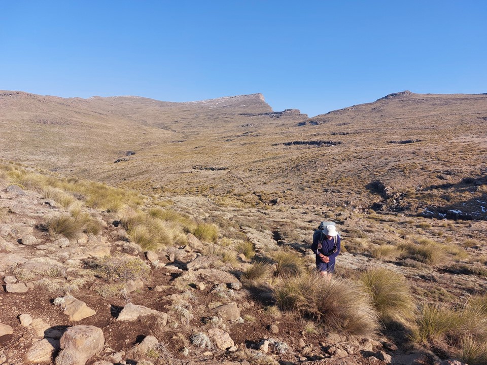 Like many other peaks that are statistically relevant, the view from the second highest mountain in Southern Africa wasn’t about to win any contest for the best view in Southern Africa – but after wanting to head up this peak for more than 12 years, it was great to finally stand on the summit. We got a good look around, some photos and both measured the height according to our GPS devices – incidentally mine recorded 3470m, 8m higher than the official height. A handheld GPS with a barometric altimeter is usually within 10m, so this would be about right. Most importantly it agreed with the ARCGis data that suggested that Makheka was higher than Lithotobolong, which is higher than Mafadi – which was good to confirm, even if all measurements were within margin for error and thus technically meaningless.