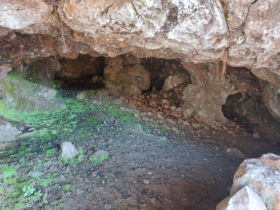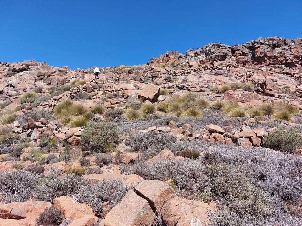 We looked for a spot where we could pitch a tent on the flat ground on the way up the ridge – mostly because it would mean being close to water, but also because I had realised I was probably too slow to reach the cave before dark. This detour didn’t result in finding anything that was both dry and flat, unfortunately, so we made our way back to the trail and continued up the ridge.
